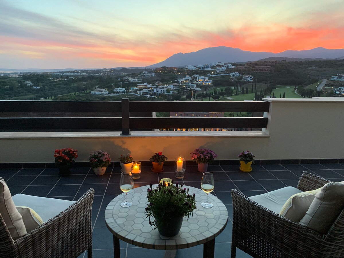The View 🌟 Luxury Appartement 🌅Sea-,Sunset- Africa-, Gibraltar-, Villa Padierna & Golf View🤩 Willkommen in Ihrem exklusiven Urlaubsdomizil! Unser stilvolles Apartment im Golf Resort Los Flamingos HOYO 19, bietet Ihnen eine erstklassige Unterkunft in einer der exklusivsten Gegenden nähe Marbella und Puerto Banus. Atemberaubender Ausblick auf das Meer 🌊& Sonnenuntergang🌅 🏖️Strandnähe 👨🏼🍳Restaurant, Wellness 🚗Tiefgarage 🤩Traumhafte Terrasse 🏊🏼♂️5 Pools