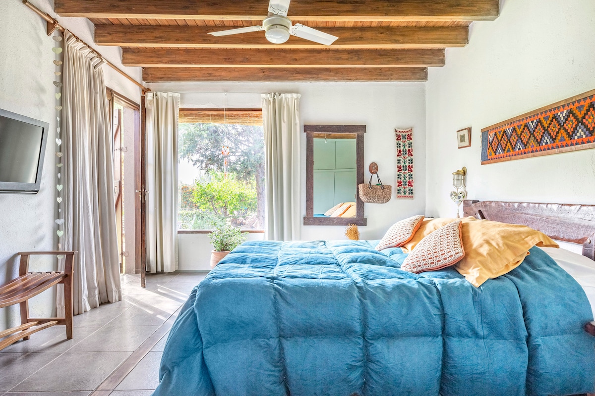 A unique place. A space to fully experience. 13 km from the city of Mendoza and within the "Wine Roads" circuit. With a private exit, exclusive covered garage, excellent Wi-Fi, a queen-size bed, en suite bathroom, TV, refrigerator, electric oven, microwave, electric kettle, bed and bath linens, and pool towels. We also include a split-screen TV and a safe. We continue to add comfort and tranquility to make your stay in our space unforgettable.