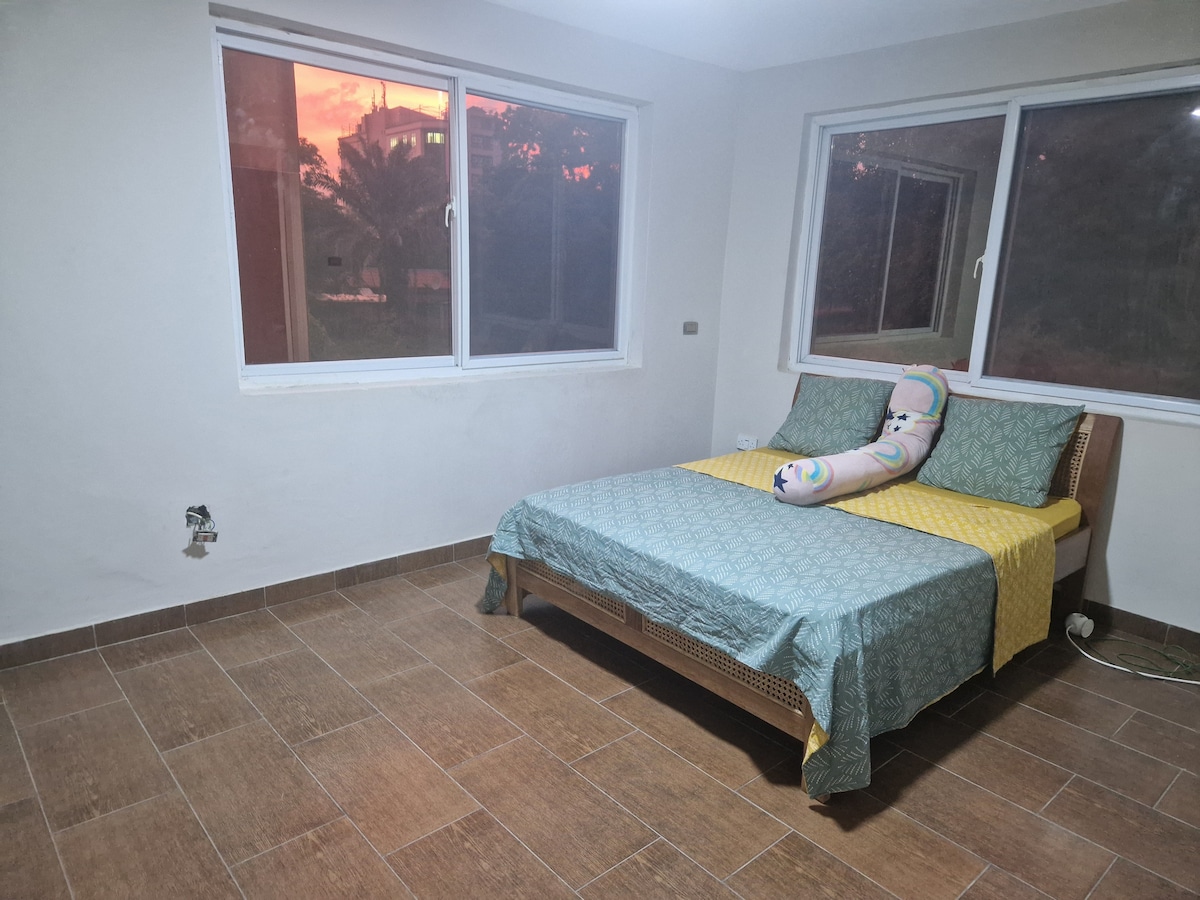 Maligayang pagdating sa aming marangyang property na may 4 na kuwarto sa East Legon. Matatagpuan sa isang tahimik na compound na may swimming pool, ang bawat gusali ay sumasalamin sa isa pa sa disenyo at mga amenidad. 8 minuto lang ang layo sa University of Ghana at 15 minuto ang layo sa airport. Nagtatampok ang tuluyan ng isang ground - floor na kuwarto at tatlong palapag sa itaas, lahat ay en - suite. Ipinagmamalaki ng dalawang pangunahing silid - tulugan ang mga king - size na higaan at maluluwag na kuwarto. Makaranas ng privacy, seguridad, at katahimikan na malapit sa mga amenidad ng lungsod. Naghihintay ang iyong perpektong tuluyan na malayo sa bahay….