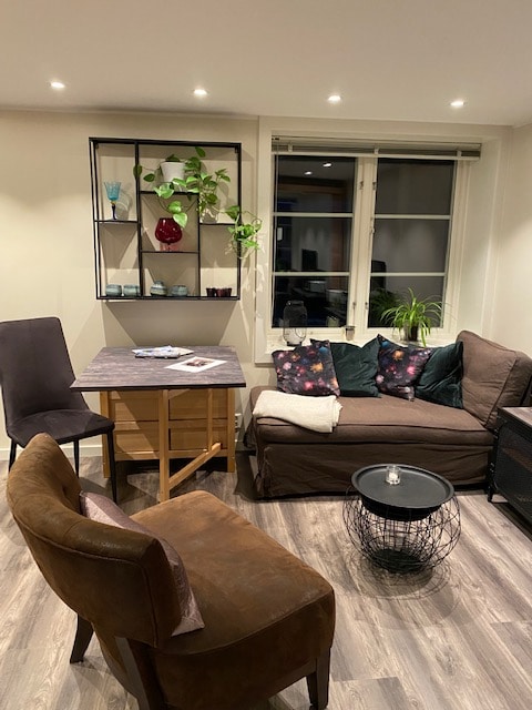 Hybelleilighet på totalt 27 kvm i sokkeletasje av enebolig i Drøbak sentrum. Fullt kjøkken med alle fasiliteter: induksjonstopp, stekeovn, mikroovn, oppvaskmaskin, kjøleskap og fryser. Bad med dusj og vaskemaskin. Skulle du føle at noe mangler, gi oss beskjed, så ordner det seg sikkert. Alle gulv har gulvvarme. Huset ligger innerst i en blindvei, midt i Drøbak sentrum. Rolig og tilbaketrukket, samtidig som det kun er to minutter å gå til "liv og røre". Ingen gjenboere. Seng er 120 cm bred.