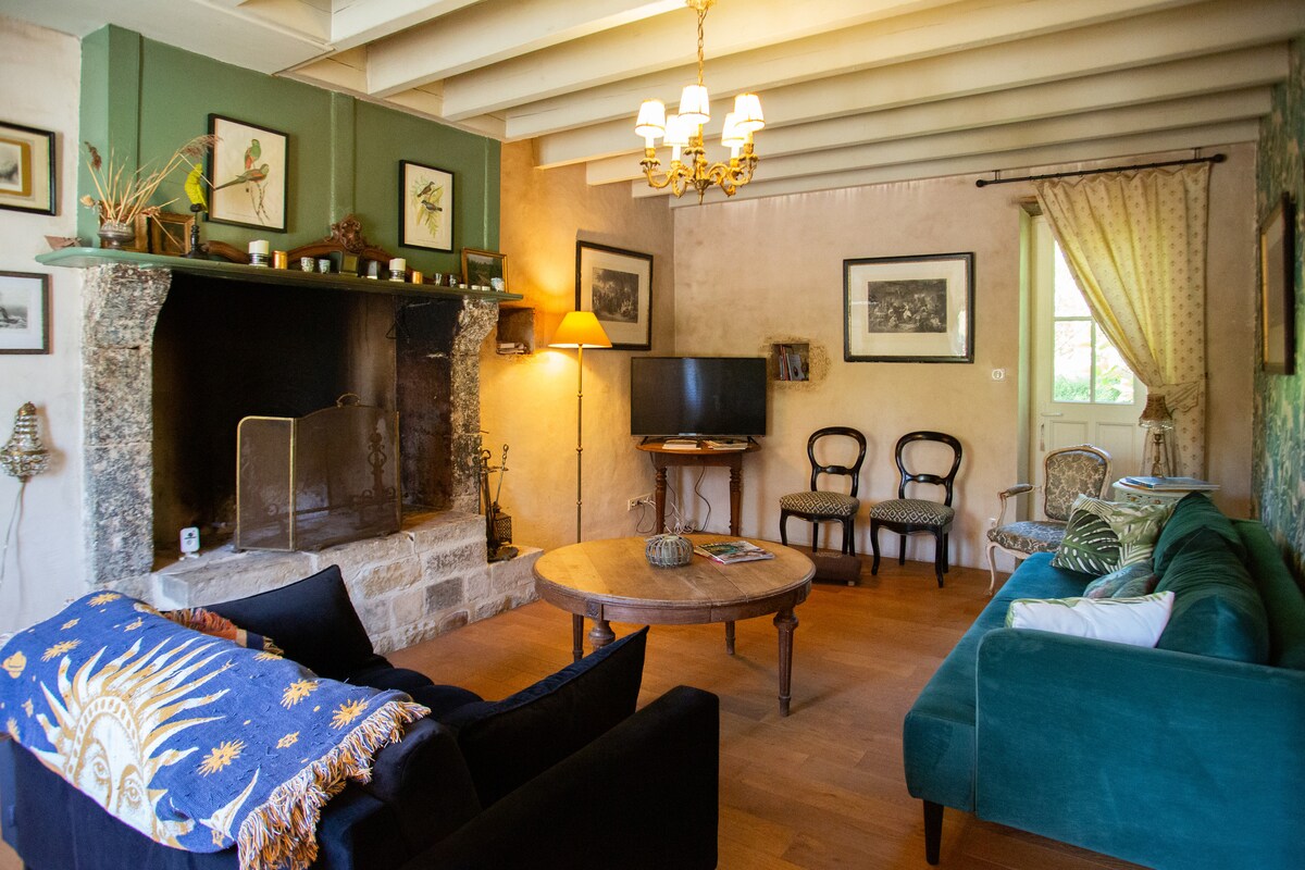 PAMBIHIRANG COTTAGE SA DEPENDANCES DU CHATEAU, MULA pa NOONG ika -16 na SIGLO (200m2) matutulog nang hanggang 6 na bisita: - 1 malaking silid - tulugan sa itaas (1 pandalawahang kama + 1 pang - isahang kama) - 1 pangalawang malaking silid - tulugan sa sahig (1 pandalawahang kama) - 1 dagdag na kama sa landing sa itaas - 1 banyo (na may tub) sa itaas - 2 banyo (sa unang palapag at sa sahig) - 1 malaking sala - Malaking panahon ng fireplace (depende) pati na rin ang kusinang kumpleto sa kagamitan sa silid - kainan. - 1 saddler