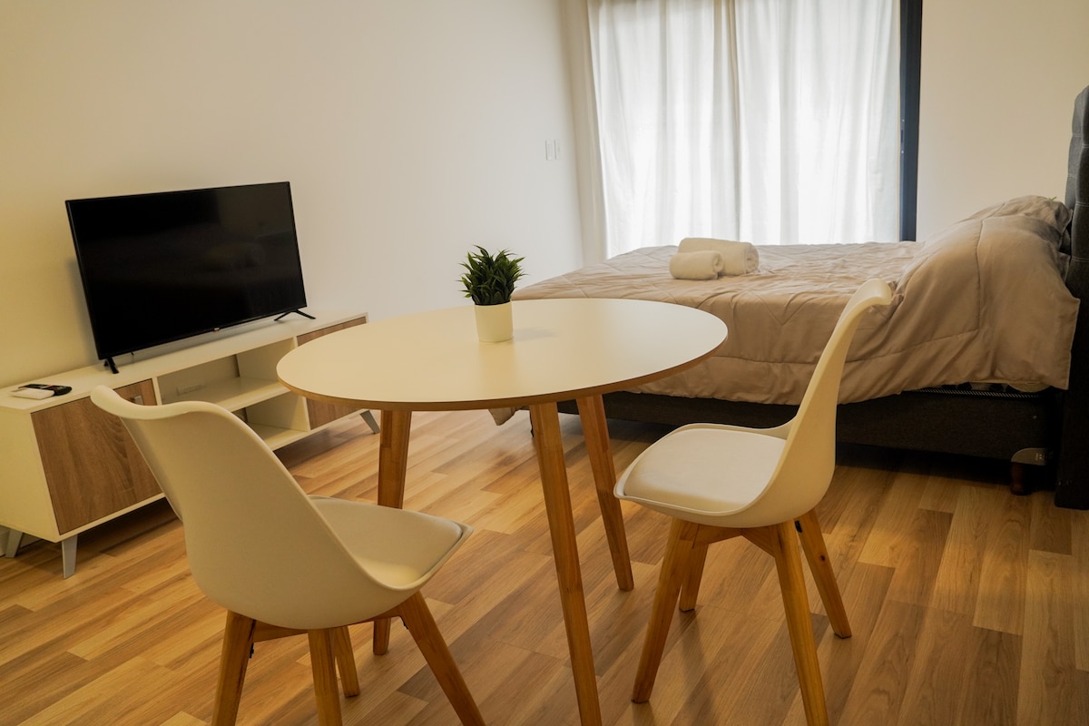 Maluwang na 58 m² studio apartment 🏡 - perpekto para sa mga mag - asawa, biyahero at digital nomad na 🌍 naghahanap ng kaginhawaan at lokasyon. Mga hakbang mula sa Terminal 🚌 at kapitbahayan ng Pichincha🌆, nag - aalok ito ng double bed🛏️, kumpletong kusina🍳, Smart TV📺, mabilis na Wi - Fi 🚀 at panloob na patyo 🌿 - Perpekto para sa pagrerelaks, pagtatrabaho nang malayuan💻, o paglilibot sa Rosario 🧳 - Naghihintay ang iyong komportable, praktikal, at maayos na pamamalagi! 🙌