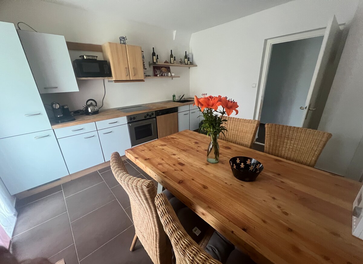Nag‑aalok ang magandang apartment na ito sa nakalistang distrito ng lahat ng kaginhawa sa isang maayos na inayos at napakagandang ayos. Matulog nang maayos sa 2 magkaparehong silid - tulugan sa mga orihinal na cell sa likod ng 1 metro na makapal na pader. Maglibot sa katabing Baden‑Baden, o mag‑mountain bike sa Black Forest Nature Park. Nakakapagpahinga sa malawak na terrace na may tanawin ng magandang hardin.