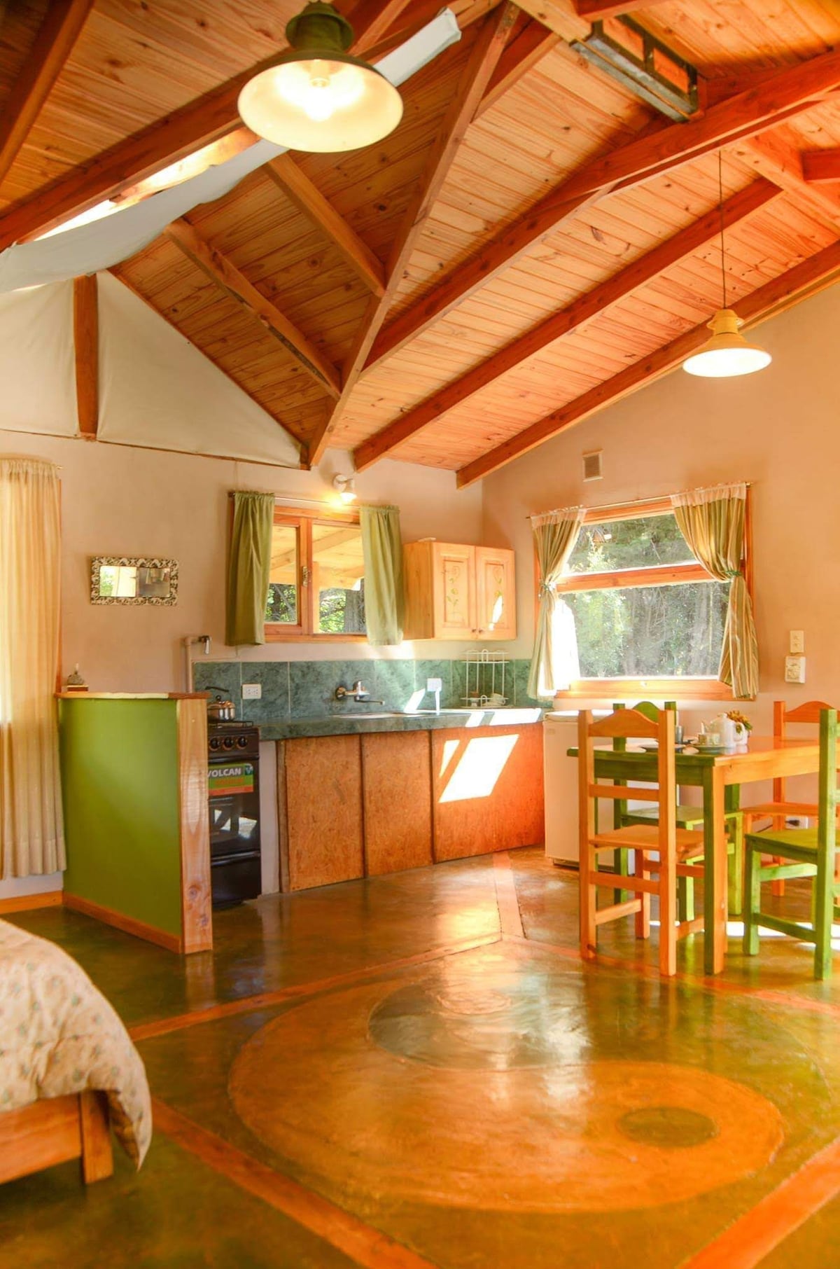 Buong departament sa tourist Villa. Tamang - tama para sa mga mag - asawa. Kami ay nasa pambansang rute n°16, isang km ang layo mula sa National Park Lago Puelo at isang km mula sa sentro ng bayan ng Lago Puelo. Ang apartement ay may buong landscape garden na may beatifull view sa mga bundok na nakapaligid sa amin. Mayroon itong kusinang kumpleto sa kagamitan, matrimonial room, at pribadong banyo.