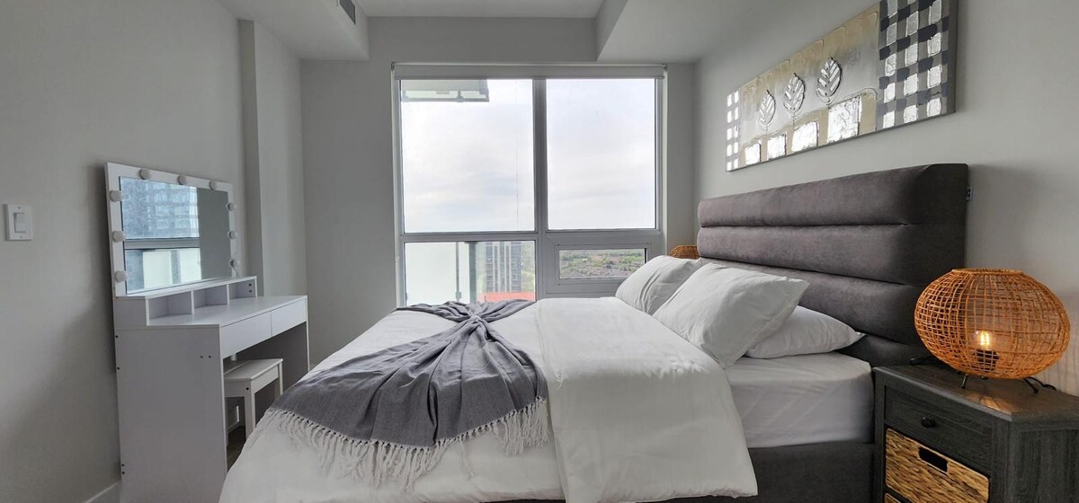 Ang modernong marangyang at maluwag na corner unit na ito kung saan matatanaw ang Sikat na Marilyn Monroe Towers ng Mississauga ay ang iyong tahanan. May gitnang kinalalagyan, maglakad papunta sa Square One Shopping Center (pinakamalaking Mall ng Ontario), Luxury Brand Stores, Whole Foods, Wal - Mart, Celebration Square, Living Arts Center, Public Transport Bus Station, 25 minutong biyahe papunta sa downtown Toronto, 12 minutong biyahe papunta sa Pearson International Airport, Parks, Schools, College, at Marami pang iba. Bukas na ngayon para sa mas matatagal na pamamalagi.