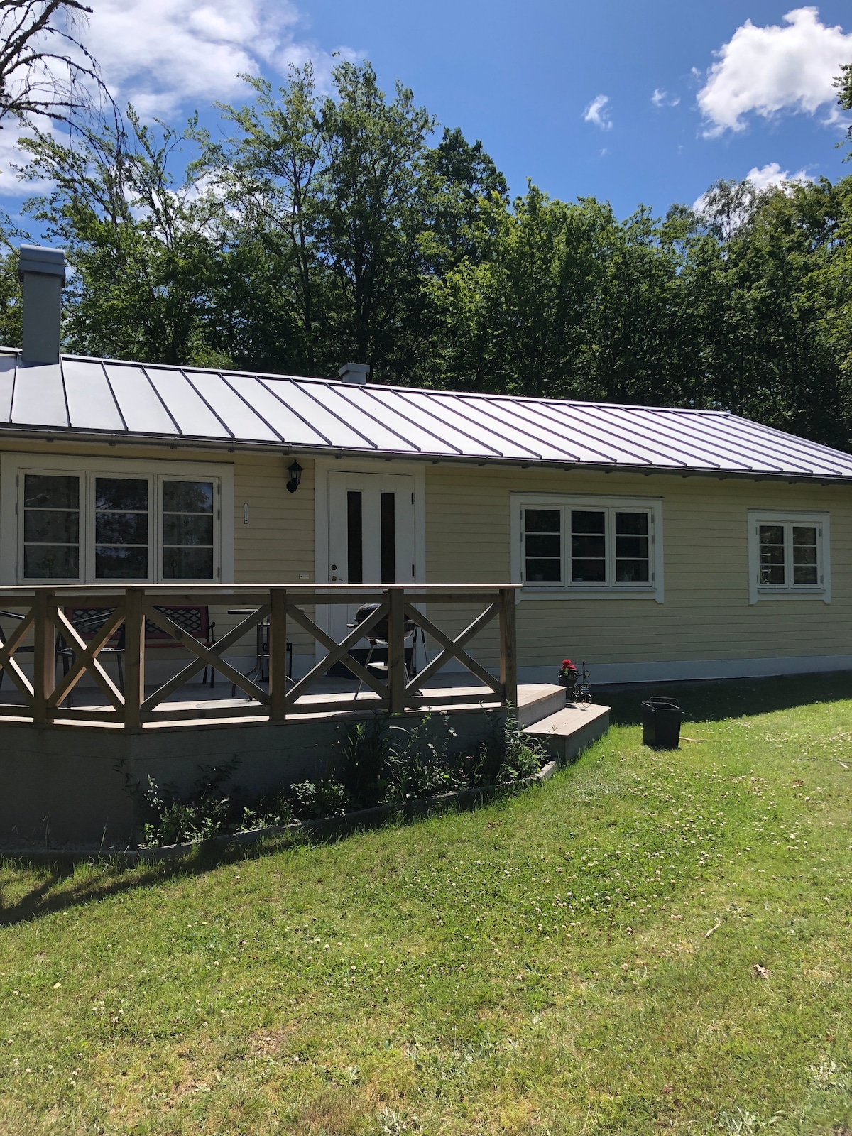 Cottage na may isang solong lokasyon na matatagpuan sa bahagi ng isang lagay ng lupa na may posibilidad na humiram ng isang rowboat. Ang balangkas ay may hangganan sa lawa, kagubatan at mga bukid. Ibinabahagi ang balangkas sa may - ari ng bahay ngunit ang mga bisita ay may bahagi ng balangkas para sa kanilang sarili na mag - enjoy. Sa parang/bukid, gumala ng usa at kung masuwerte ka, makikita mo rin ang moose. May mga pagkakataon sa pagha - hike.