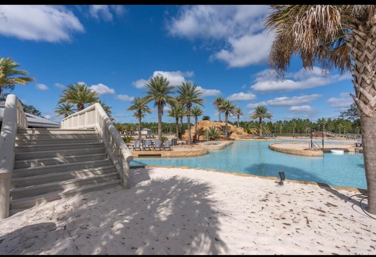 Welcome sa aming Bagong Luxury Lakefront House na idinisenyo para sa kaginhawa at estilo. Mamalagi nang tahimik sa komunidad na may tahimik, pampamilya, at may wheelchair na 9 na milya lang ang layo mula sa Navarre Beach. Mag-enjoy sa mga nakamamanghang tanawin ng lawa, masayang game room (ping pong, pool table..), access sa nakakapreskong saltwater community pool. Napapalibutan ng magagandang National Green Belt, ito ang perpektong bakasyunan sa baybayin! Bakasyon man ito ng pamilya o mapayapang bakasyon, mayroon ang bahay na ito ng lahat ng kailangan mo.