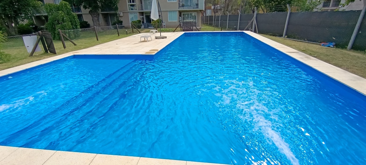 Kalimutan ang mga alalahanin sa maluwag at tahimik na lugar na ito, kung saan ang kaginhawaan ay sumasama sa kalikasan. Ang apartment ay may direktang elevator, libreng carport ilang metro mula sa pasukan at kapaligiran ng ganap na kapayapaan. Nag - aalok ang kapitbahayan ng 24 na oras na seguridad para sa iyong kapanatagan ng isip. Matatagpuan ang La Nazarena condominium malapit sa km 50 ng Panamericana, Ramal Pilar, 1.5 km sa itaas ng Chubut Street. Mayroon itong malaking wooded park at malaking pool.