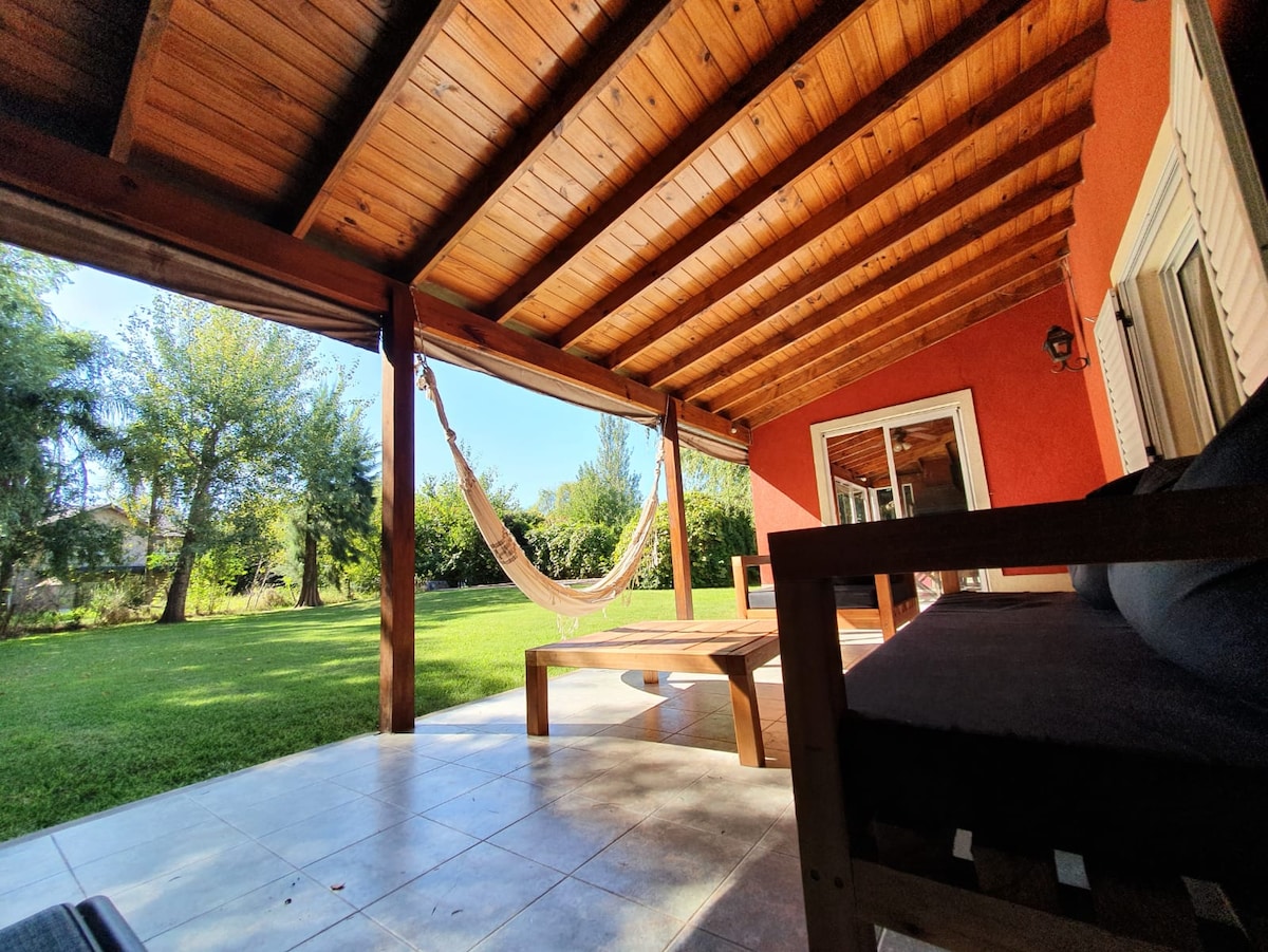 Casa de Campo muy cerca de la cuidad, cuenta con un parque de 3500 mt2 pileta, sector de Parrilla con horno de barro y una gran galería que desde allí tenes la mejor vista! La casa cuenta con living cocina integrada, aire frio calor, dos habitaciones con un baño completo que comparten. Una de ellas con cama matrimonial y Tv la otra con Tres camas individuales (la dos con aire y placar).TV con Netflix. También cuenta con lavadero y baño adicional. Consulta por late check out según disponibilidad!
