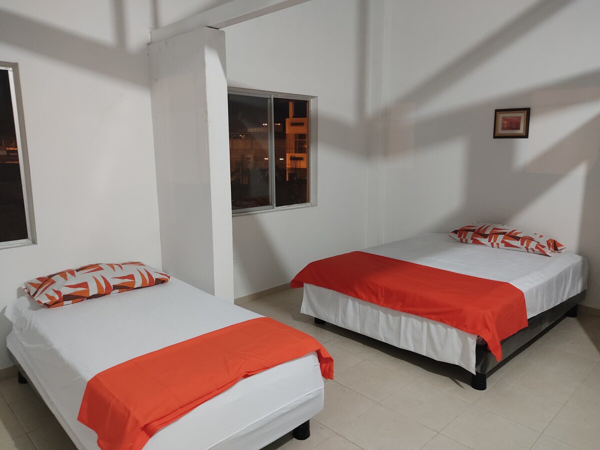 Komportableng suite, na matatagpuan sa gitna ng Atacames, dalawang bloke mula sa central park. Libreng parking space, wifi, kusinang kumpleto sa kagamitan, refrigerator, tv, duyan. Mga restawran sa malapit na may matarik na panahon sa komportableng presyo.