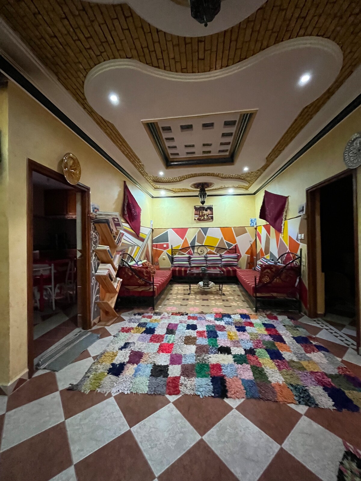 Marion at Said ay dalawang manunulat, din kick boxers at para sa isa, psychologist at psychotherapist at para sa iba pang dating direktor ng isang socio - cultural center. Itinayo nila ang 600m2 na solong palapag na bahay na ito sa 25,000m2 lot sa gitna ng kagubatan ng argan. 500m ang layo ng pinakamalapit na tirahan. 6km ang layo ng Mogador airport at 23km ang layo ng Essaouira. Binubuo ang bahay ng 2 kuwarto at 4 na suite na 45, 55, 70 at 90 m2, isang sala na 110m2 (6m ang taas). a/ Ang kuwartong "TURMERIC" na 30 m2 na may fireplace at Banyo (Banyo = Toilet + Sink + bathtub) (perpekto para sa 2 may sapat na gulang + isang sanggol) b/ Ang kuwartong "MOCHA" na 35 m2 na may fireplace, seating area at banyo ( perpekto para sa 2 may sapat na gulang + 1 bata), na may air conditioning. c/ Ang suite na "SAFRANE" na 45 m2 na may fireplace, seating area at banyo (2 may sapat na gulang + 2 bata+ 1 sanggol) d/ Ang suite na "ZARAK" na 55 m2 na may sala at fireplace nito + pribadong terrace na may mga banquette at mesa + banyo (2 may sapat na gulang + 2 bata) o 4 na kaibigan. e/ Ang "BLED" suite na 70 m2 na may 2 sala + Banyo plus ( 4 na may sapat na gulang + 1 bata + 1 sanggol) na may air conditioning. f/ The "AZUR" suite ng 90 m2 na may 2 silid - tulugan + 2 banyo + 1 sala (6 na matanda) na may air conditioning. Patyo, swimming pool (hindi available sa panahon ng taglamig), 12 m2 hammam, boxing ring at mga kapansin - pansing bag sa labas, library, hardin, at terrace. Ang pagkain, tradisyonal na Moroccan, ay gawa sa mga organic na produkto. Ang 5% ng mga netong kita ay ibinibigay sa lokal na asosasyon ng pag - unlad na Ida o blal ... Para makapunta sa aming tahanan, kailangan mong dalhin. Hindi namin inirerekomenda ang mga taxi na ayaw sumakay. Mula noong Enero 2019, ang access ay direkta at 13 minuto mula sa paliparan (30 minuto mula sa Essaouira). Aabutin nang 6 na kilometro ang hindi nakaiskedyul na track. Sa aming Dacia Logan, nagmamaneho kami sa average na 50 km/h. Aabutin nang 300 hanggang 450 dirhams kada araw depende sa panahon para sa isang Dacia - type na rental car pero mukhang mas mainam na magrenta sa Marrakech o Essaouira airport sa mga internasyonal na ahensya sa pagpapagamit online, ikaw ang bahala. Itinayo ang bahay sa tuktok ng burol. Nakakamangha ang 360° panoramic view na humigit - kumulang labinlimang km. Perpektong lugar para sa matagal na pamamalagi sa paligid ng pagbabasa, pagsusulat, pagmumuni - muni o pag - laze lang sa paligid ng pool. Para sa buong board, bukod pa sa mga almusal (binubuo ng lutong - bahay na tinapay, mantikilya, sariwang orange juice at mainit na inumin) na kasama na sa presyo ng mga kuwarto, nag - aalok kami ng tanghalian at hapunan, na may, depende sa panahon, mga organic na gulay mula sa aming hardin (ang aming cottage ay nasa balangkas na 25,000 m2), kabilang ang mga tradisyonal na pagkaing Moroccan (isang starter, isang ulam at isang panghimagas na may bote ng mineral na tubig at isang kape o tsaa na may mga mabangong damo mula sa aming hardin, upang pumili mula sa: 20 euro bawat may sapat na gulang para sa 2 pagkain sa tanghali (8 euro) at gabi (12 euro) 14 na euro para sa mga batang mula 5 hanggang 13 taong gulang (tanghali 6 euro at gabi 8 euro) Libre para sa mga edad 4 pababa. Posibilidad ng paglalaba para sa 5 euro bawat makina. Libre ang pool pero may bayad ang hammam. Para sa impormasyon, maglilingkod na ngayon ang mga kompanyang TRANSAVIA (Air France / KLM group) at RAYNAIR sa Essaouira mula sa Orly, Brussels at Marseille (mula Marso 1) Handa kaming humingi ng higit pang impormasyon! Marion&Saïd