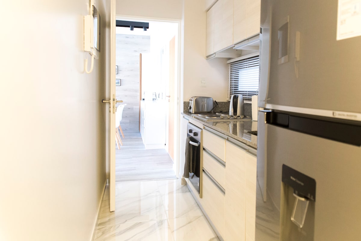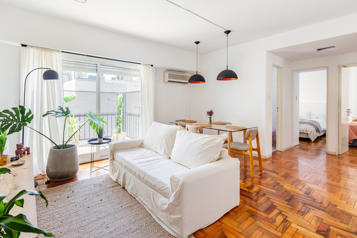 Maliwanag na apartment na may estilong Nordic na idinisenyo para maging komportable ka. 50 metro lang ang layo sa Av. del Libertador at 7 bloke ang layo sa Av. Cabildo, ito ay isang perpektong lugar para sa mga naghahanap ng kumbinasyon ng kaginhawaan, kalikasan, at buhay sa lungsod. Mainam para sa pagtakbo, pamimili, paglalakad, at pagliliwaliw. Tahimik at madaling puntahan ang gusali, at may garahe rin ang apartment na pinapagamit nang hiwalay at mainam para sa mga bumibiyahe gamit ang sasakyan.