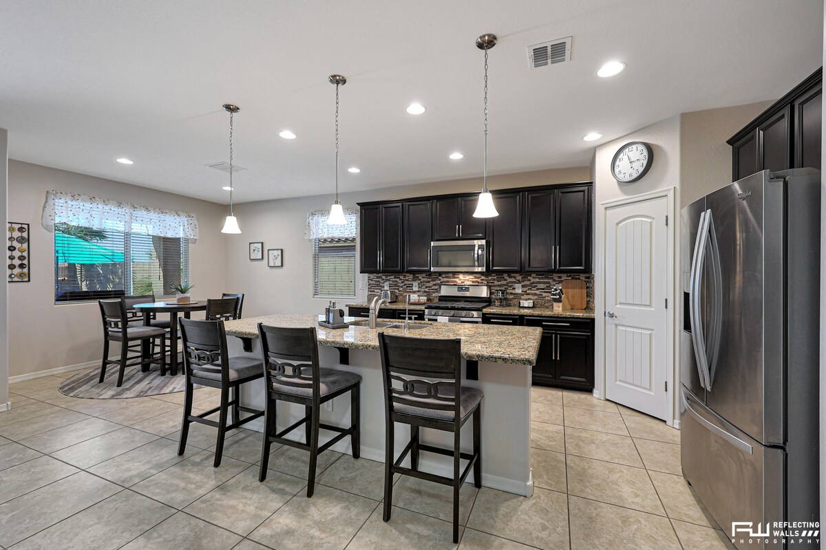 Matatagpuan ang bagong itinayong tuluyan na may estilo ng rantso sa tahimik na bilog na may mga tanawin ng Estrella Mountains. Maganda ang tanawin ng tuluyang ito at may pribadong pool (pinainit nang may dagdag na bayarin) at hiwalay na heated spa. May 4 na silid - tulugan, 4 na banyo at 2,300 talampakang kuwadrado ang lahat. May 2 master suite, isang 3rd bedroom, isang casita na may sariling pasukan at 1 malaking pangunahing bukas na sala na mainam para sa nakakaaliw. Malapit sa pamimili, pagha - hike, baseball field, sinehan, at karamihan sa mga amenidad.