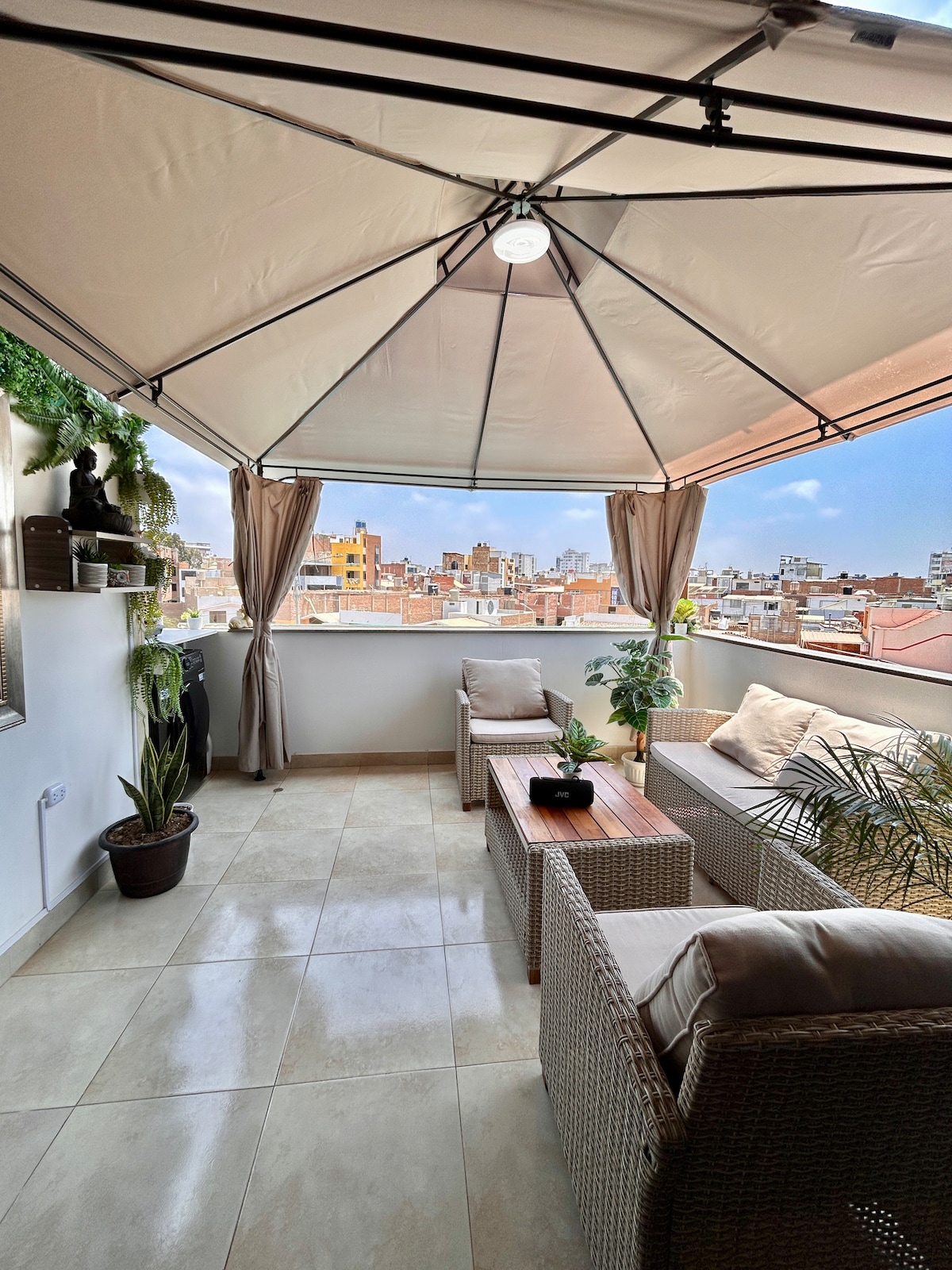 ✨ Komportable at maluwang na apartment sa Chiclayo – 5 min lang mula sa airport ✨ Mag‑enjoy sa komportable at tahimik na pamamalagi sa maluwag na apartment na ito sa Jockey Residential, isa sa mga pinakaligtas at pinakamagandang puntahan sa Chiclayo. Mainam para sa mga biyaheng pampamilya, trabaho, o turismo dahil malapit sa lahat ng kailangan mo (pamilihan, convenience store, pampublikong transportasyon, atbp.). Priyoridad naming bigyan ka ng mainit at iniangkop na pansin.✨