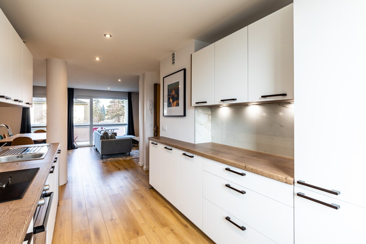 Perpekto para sa isang pamamalagi sa Annecy, ang aming renovated at maliwanag na55m² apartment ay perpekto para sa 2 tao. Matatagpuan 1600 metro mula sa sentro ng lungsod at 1400m mula sa lawa, nag - aalok ito ng komportableng kuwarto na may de - kalidad na sapin sa higaan, kumpletong kusina, malawak na sala, washing machine, at marami pang iba! Samantalahin ang libreng paradahan at malapit na mga hintuan ng bus para madaling matuklasan ang lugar. Maluwang at modernong lugar para sa nakakarelaks at kaaya - ayang pamamalagi sa Annecy!