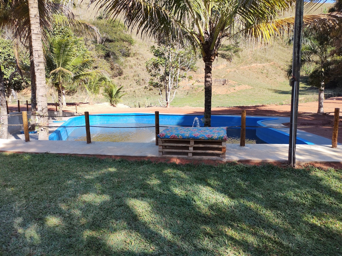 Halika at mag-enjoy sa mga di-malilimutang sandali sa Sítio Vale do Café! Mainam para sa mga pagtitipon ng grupo at paglilibang, pinagsasama ng aming rantso ang simpleng ganda ng pamumuhay sa Minas Gerais at lahat ng amenidad na kailangan mo. Pribilehiyong Lokasyon: 2 km lang kami mula sa sikat na Gruta da Pedra Santa, na nagbibigay‑daan sa madaling pagpunta sa tourist spot ng rehiyon. Komportableng Tuluyan: May 4 na silid‑tulugan ang rantso na maayos na nakapuwesto para mapatuloy ang pamilya at mga kaibigan mo nang tahimik.