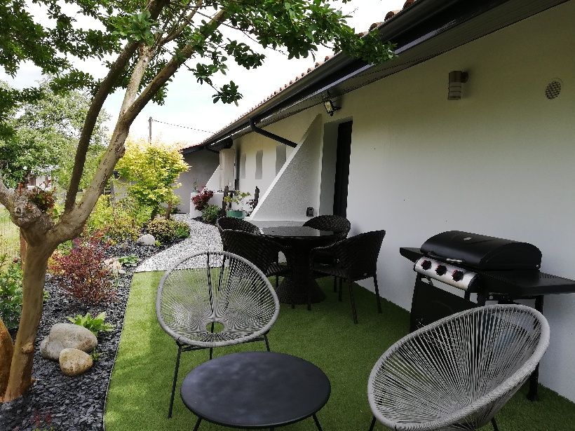 Halika at magrelaks nang tahimik sa aming bagong 26 m2 T2. Matatagpuan sa pagitan ng Landes at Basque Country, 5 minuto mula sa beach at 20 minuto mula sa hangganan ng Spain. Malapit sa lahat ng amenidad: Panaderya, Hypermarket, Sinehan, Trambus... Tuluyan na binubuo ng kusina na may oven, induction hob, microwave, washing machine, atbp. Sala, Sofa,TV at WiFi. Kuwartong may double bed, mga aparador, at shower room. Pribadong paradahan Pribadong hardin na may tanawin, terrace, muwebles sa hardin, plancha...