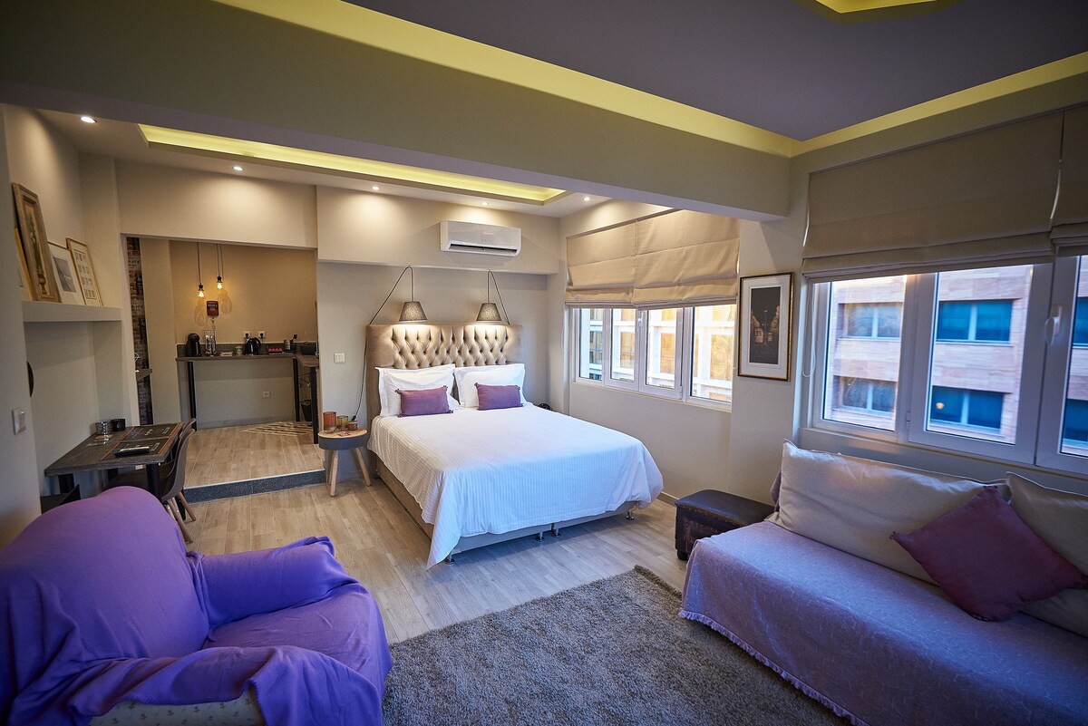 Maligayang pagdating sa aming pasadyang romantikong tirahan. Mainit at sopistikado, makikita mo ang kaakit - akit na apartment na ito sa gitna ng Athens. Sinasalamin ang kagandahan at kadakilaan ng mga kalye sa ibaba ng Acropolis, ang tuluyang ito ay magpapahinga sa iyo sa estilo. Matapos ang mga abalang araw sa kaguluhan ng lungsod ng Athens, ang tuluyang ito ang pinakamagandang bakasyunan para sa pagrerelaks. Ibabad ang mga binti na nakakapagod sa pagbibiyahe sa bubbly outdoor jacuzzi sa buong taon. Bumalik sa velvet sofa na may isang baso ng Greek wine sa harap ng fireplace.