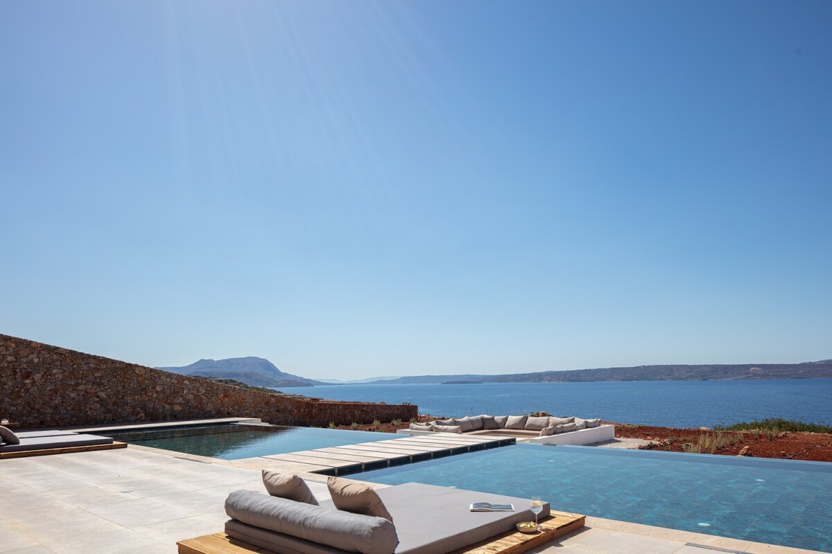 Astelia Villa is a brand-new 3-bedroom retreat with a private pool, panoramic sea views, and sunsets you won't forget. Open-plan living and wide outdoor terraces designed around the view - clean lines, natural materials, nothing between you and the Cretan coastline. Set on elevated ground between Chania (20 min) and Rethymno (25 min), minutes from Almyrida, Kalyves, and Stavros beaches while staying comfortably away from the crowds.