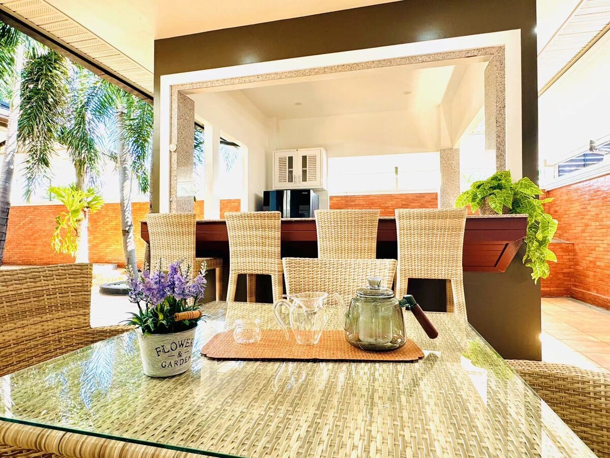 这栋充满活力的热带别墅位于清迈的黄金地段,WangTan 小区重叠机场商圈非常适合大型团体和与家人或朋友聚会。别墅配备各种设施,包括大型游泳池、按摩浴缸.可供您全方位娱乐。我们的户外可看私人湖泊的美景,地理位置优越,可轻松前往市区,靠近便利店和超级市场。我们还应要求提供餐饮和交通服务,费用由房客自行承担。 房源介绍 这是一栋现代风格的2层别墅,屋顶可欣赏私人湖泊,还有一个带按摩浴缸的大泳池。 *5间卧室*6个卫生间 *宽敞的公共区域 *配备电器的西式厨房*每个房间配备智能电视*一次性洗漱用品*茶水工作台*大型环绕式泳池露台 这栋别墅最多可容纳10人,设施齐全,让每个人都能玩得开心。优雅与安静的心灵放松之地.这里是家庭度假、商务团体和大型朋友团体的理想之选。5间卧室和6个卫生间确保所有房客的隐私。室内光线充足,与木制家具融为一体,营造出温馨舒适的环境。 公共区域通往泳池露台,露台宽敞,是一个不错的聚会场所。游泳池是一个超大泳池,大小适合成人和儿童入住。大门是遥控的,房源周围的墙壁建造得很高,以确保我们的房客拥有极致的隐私。 别墅外部是森林景观避免不了蚊虫. 提前告知. 不喜勿定