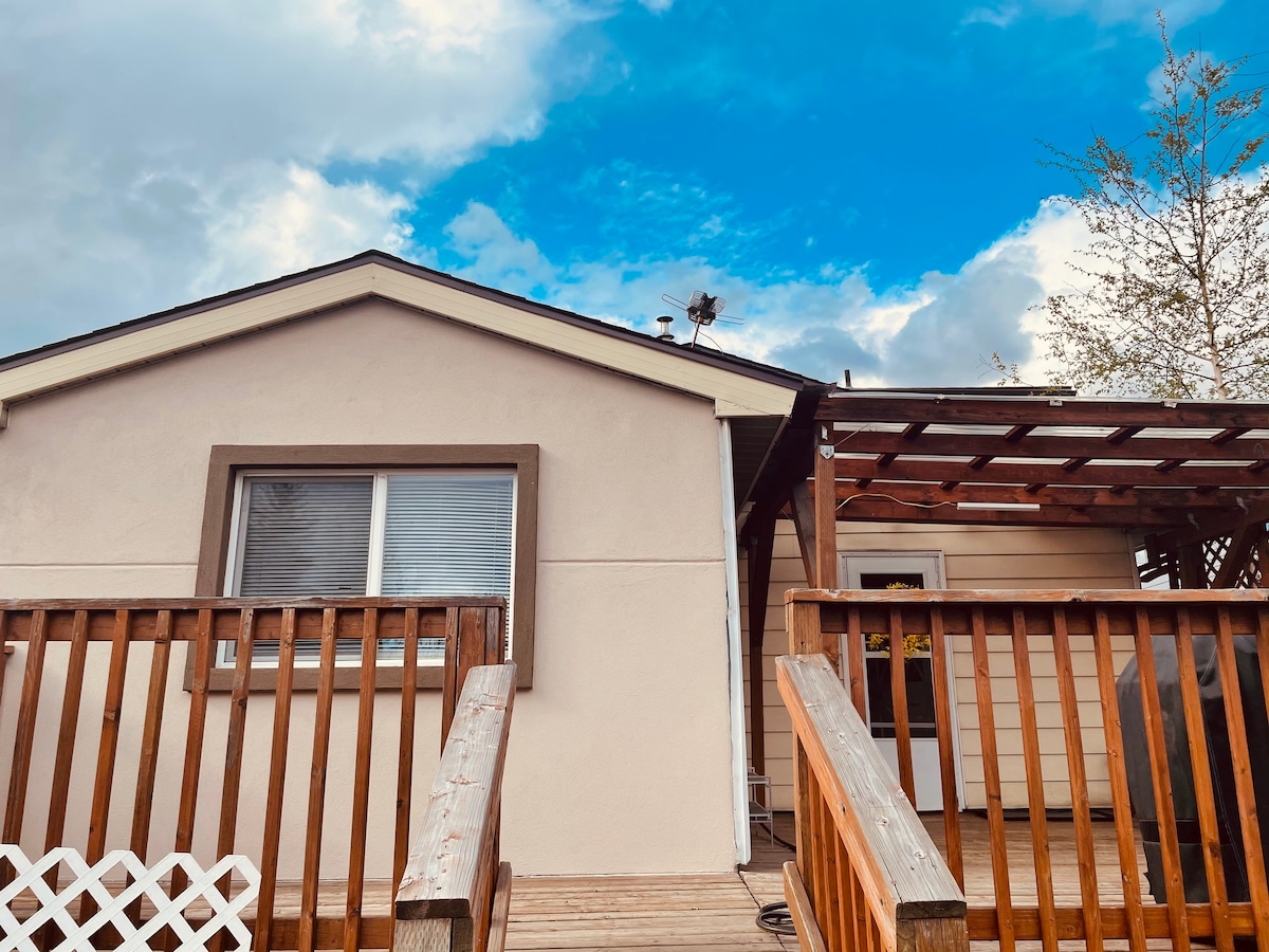 Komportable at nasa sentro ang tuluyan na 3.7 milya lang ang layo sa Fairbanks International Airport at malapit sa Pioneer Park. Matatagpuan sa tahimik na kapitbahayan, perpekto para sa mga panandaliang pamamalagi at business trip. Walang kumpletong kusina; may kasamang microwave, munting refrigerator, coffee maker, Wi‑Fi, at libreng paradahan. Malapit sa mga restawran at grocery store. Ipinagmamalaking hino‑host ng lokal na pamilyang militar na nakatuon sa maayos at magalang na pamamalagi.
