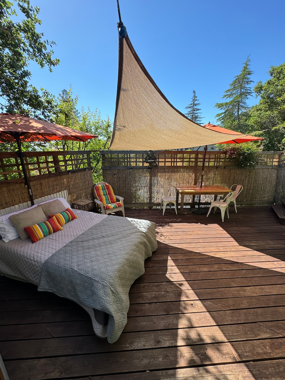Isawsaw ang iyong sarili sa kalikasan sa aking tahimik at komportableng compound, na nagpapalabo sa linya sa pagitan ng loob at labas. Itinayo gamit ang mga reclaimed at berdeng materyales para maging garden oasis, maliwanag at maaraw ang parehong gusali. **Tandaang nasa Studio ang banyo at hiwalay na gusali na 20'ang layo ng kuwarto sa Annex (tingnan ang mga litrato). Matatagpuan ito sa dalawang bloke mula sa mga trailhead ng Deer Park at sa madaling paglalakad/pagbibisikleta papunta sa bayan at mga tindahan. Maraming storage at closet space para sa mas matatagal na pamamalagi!