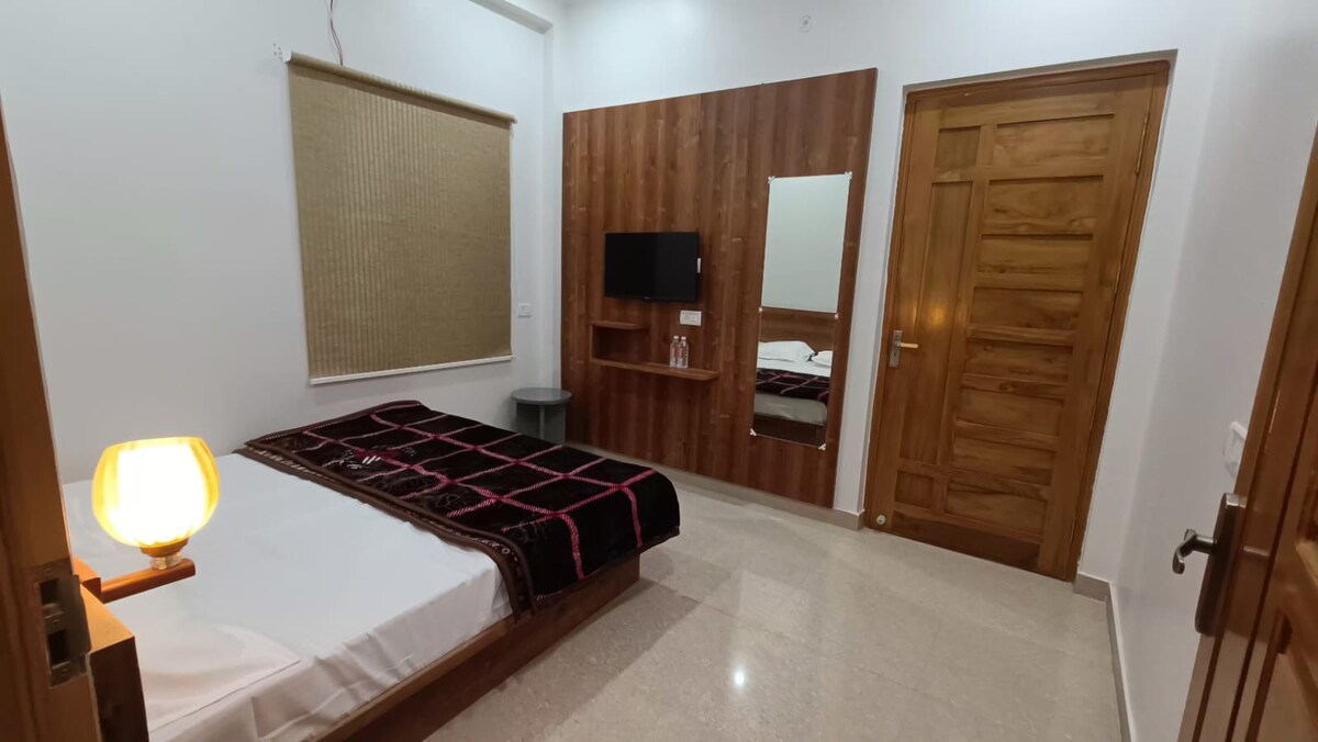 Magrelaks kasama ang buong pamilya sa mapayapang lugar na matutuluyan na ito. Maigsing lakad ang tuluyan papunta sa Shri Ram Mandir at 500 metro ang layo mula sa Ayodhya Dham Railway Station at 6.5km ang layo mula sa Airport. Available ang pampamilyang matutuluyan na may mga pasilidad sa kusina. Bumalik ang purong inuming tubig at kuryente. Pasilidad ng almusal, tanghalian, at hapunan. Available din ang bayad na pasilidad para sa pag - pick up at pag - drop.