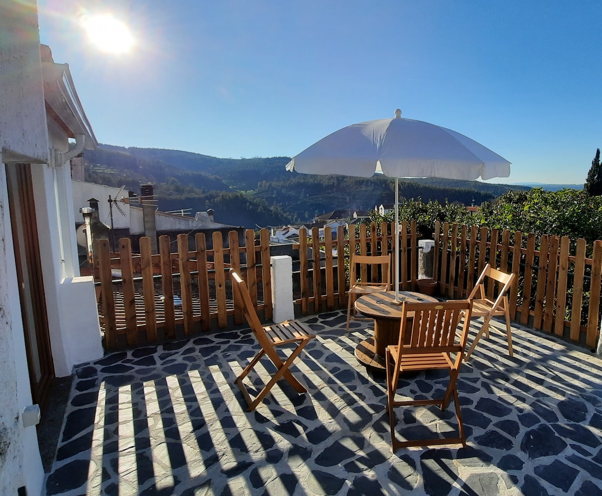 Located in the valley of Serra da Estrela, a floor in a beautiful house from the 18th century ideal for families up to 6-7 persons! 2 double rooms, and a living room with sofa that turns into a confortable double bed! Nice outdoor space, with garden, terrace and barbecue! Market and coffe nearby!