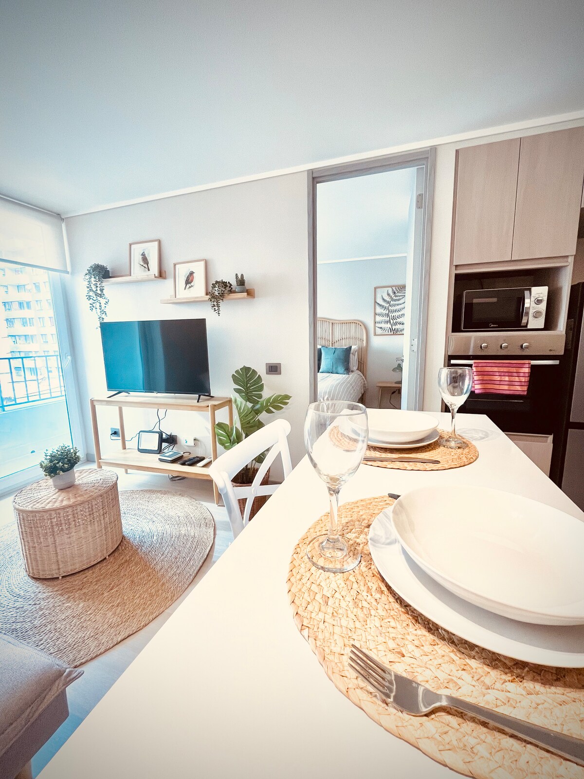 Apartment na may balkonahe/ SCL/ malapit sa Movistar Arena