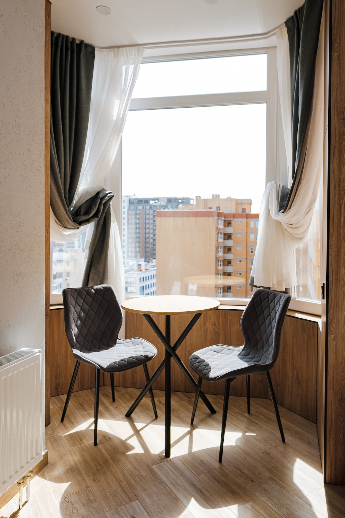 Интерьер квартиры выполнен в легком скандинавском стиле с элементами прованса. На окнах в зоне кухни минимальный декор в виде удобных ролетов, в спальне — шторы из легкого, струящегося материала,которые сдвинуты в сторонку от самого окна, чтобы пропустить как можно больше солнечных лучей. Через дорогу от дома находится большой супермаркет Novus и McDonald's. В 10-ти минутах первый украинский мегамолл — LavinaMall