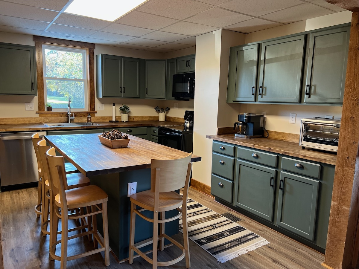 Maganda ang modernong farmhouse na matatagpuan sa Champion, PA, ilang minuto lamang mula sa 7 Springs Renovated at propesyonal na pinalamutian mula sa itaas hanggang sa ibaba, nagtatampok ang bahay na ito ng 3 silid - tulugan (ang master ay may hari, ang pangalawa ay may reyna, at ang ikatlong hiwalay na silid - tulugan ay hiwalay na guest suite na may queen bed at queen pull out), kusina na may granite at hindi kinakalawang, fireplace, a/c, malaking deck. Makikita ang tuluyan sa 2 pribadong ektarya na may mga kakahuyan sa lahat ng panig at may batis na dumadaloy sa bakuran. Isang maigsing biyahe papunta sa resort.