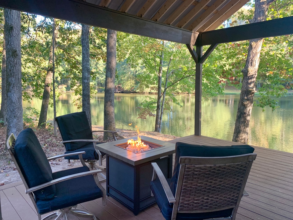 Mamalagi sa aming guest house sa Lakeside Bungalow, na may lahat ng kakailanganin mo para sa nakakarelaks na mga tanawin ng lawa, king size bed, Smart TV, pribadong patio w/ firepit, at marami pang iba. Masiyahan sa pangingisda, paddle boating, at panonood ng wildlife. Madalas nating nakikita ang mga pagong, usa, magagandang asul na heron, gansa, palaka, isda, at alitaptap⚡️. Ang guest house ay nagbabahagi ng isang pader (kitchen wall) na may pangunahing bahay. 2 friendly na Pomeranians sa site. Isang liblib na bakasyunan sa kalikasan pero malapit pa rin sa lahat ng kaginhawaan! 10 -15 minuto ang layo mula sa Target, Walmart, atbp.