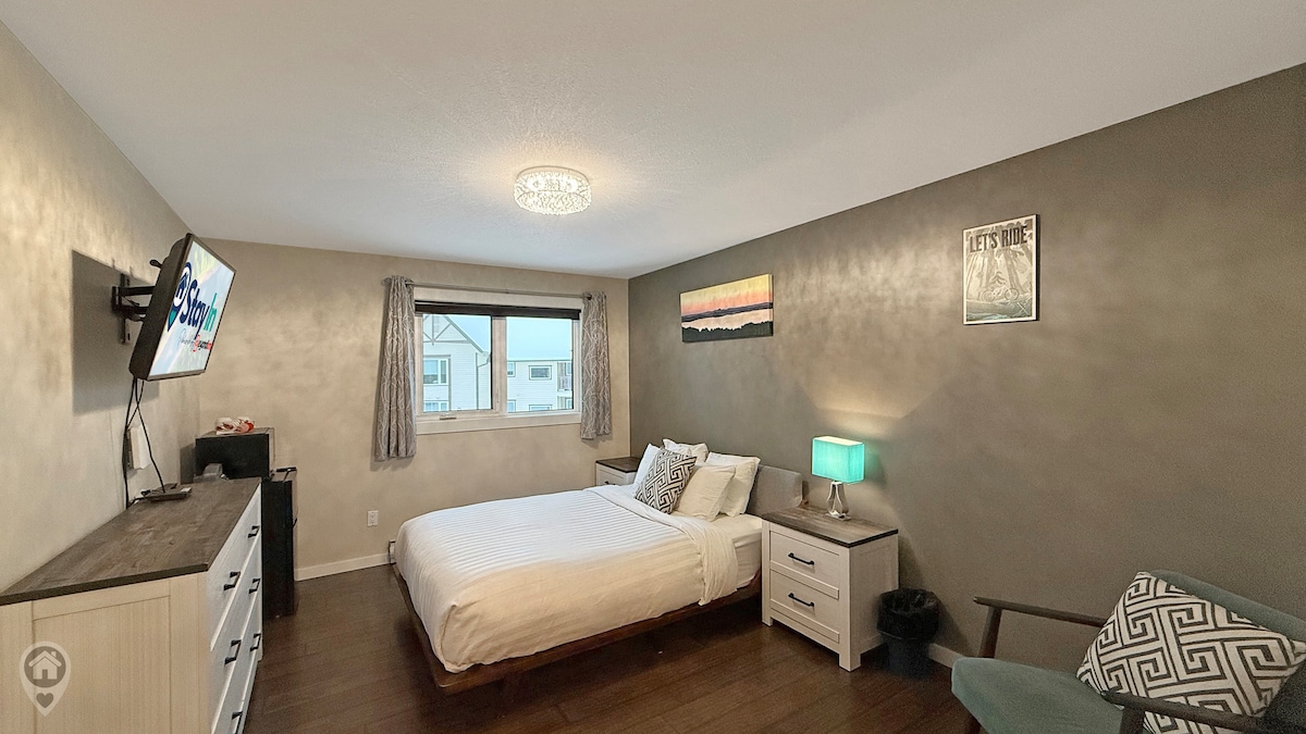Magsaya kasama ng buong pamilya sa aming one - bedroom suite sa Silver Rock Condos. Ang suite ay may kumpletong kusina, fireplace, cruiser bike, at komportableng patyo na may BBQ. Queen bed at full sofa bed na may memory foam mattress. Perpekto ang high - speed internet service para sa pagtatrabaho nang malayuan. Kasama ang Netflix, Amazon Prime, Disney Plus 55 inch 4K tv, bukod pa sa on - site na pool, steam room, outdoor hot tub, fitness room. Libreng pinainit na paradahan sa ilalim ng lupa na may karagdagang panlabas na paradahan.