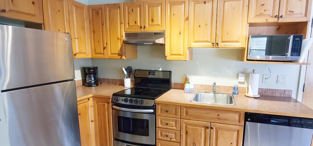 Magrelaks sa natatangi at tahimik na bakasyunang ito. Mainam para sa dalawang pamilya ng 4 o mga grupong may sapat na gulang na 7. Matatagpuan sa Fernie Alpine Resort. Mga ski lift sa loob ng maigsing distansya at ski sa daan papunta mismo sa iyong pinto. Nag - aalok ang SKI IN property na ito ng maraming oportunidad para sa libangan sa iyong pinto. Downhill skiing, Cross country skiing, Fat biking, mountain biking, pangingisda, snow shoeing, snowmobiling, o pumunta lang para magrelaks at mag - enjoy sa kalikasan. Maginhawa pero maluwang na 832 talampakang kuwadrado na suite. 4 na queen bed. 1 double at 1 single