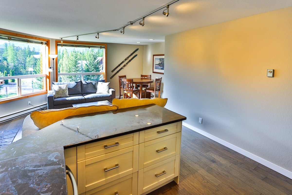 Maligayang pagdating sa iyong perpektong bakasyunan sa bundok! Pinagsasama ng condo na ito na mainam para sa alagang aso at isang silid - tulugan ang komportableng kagandahan at mga modernong amenidad, na tinitiyak ang komportableng pamamalagi para sa lahat ng bisita. I - unwind sa iyong pribadong balkonahe na may isang baso ng alak, pagkuha sa mga nakamamanghang tanawin ng mga bundok ng Canada. Narito ka man para sa paglalakbay o pagrerelaks, ang moderno at kaaya - ayang condo na ito ay may lahat ng kailangan mo para sa hindi malilimutang pamamalagi.