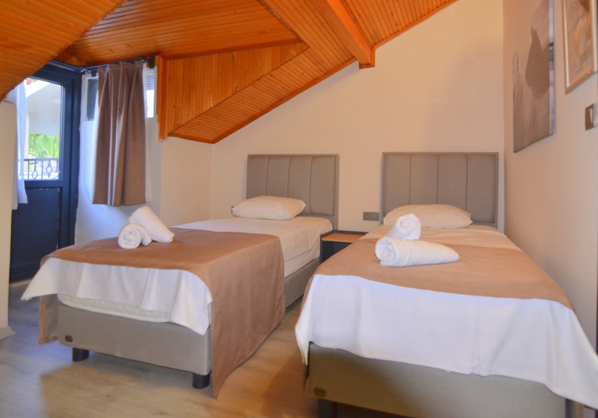 Sa paraan ng pagsisimula namin sa motto na 'Kalidad sa', nasa niyebe ka namin bilang bagong negosyo para mabigyan ka ng de - kalidad at mapayapang serbisyo sa holiday. Matatagpuan ang negosyo ng Q's Homes sa rehiyon na malapit sa sentro ng lungsod. Bukod pa rito; - 10 km mula sa beach ng Ölüdeniz, ang mag - aaral ng Fethiye, - Kayakoy 13 km ang layo - 4 km papunta sa sentro ng lungsod - 7 km mula sa Calis Beach - Matatagpuan 1 minutong lakad papunta sa ospital - Puwede ring puntahan ang mga tindahan ng grocery at restawran sa loob ng maigsing distansya.