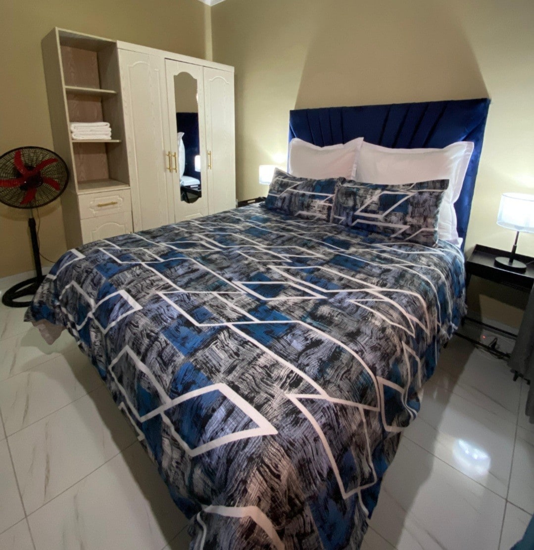 Indulge in our stunning penthouse flat, a spacious haven of elegance and comfort. Enjoy a sumptuous one-bedroom suite with a luxurious bed that promises restful nights. Our fully equipped kitchen features both gas and electric cooking appliances, a microwave, and a washing machine along with filtered drinking water for your convenience. Complete with a smart TV and high-speed Starlink Internet for seamless entertainment. Step outside to a delightful braai area
