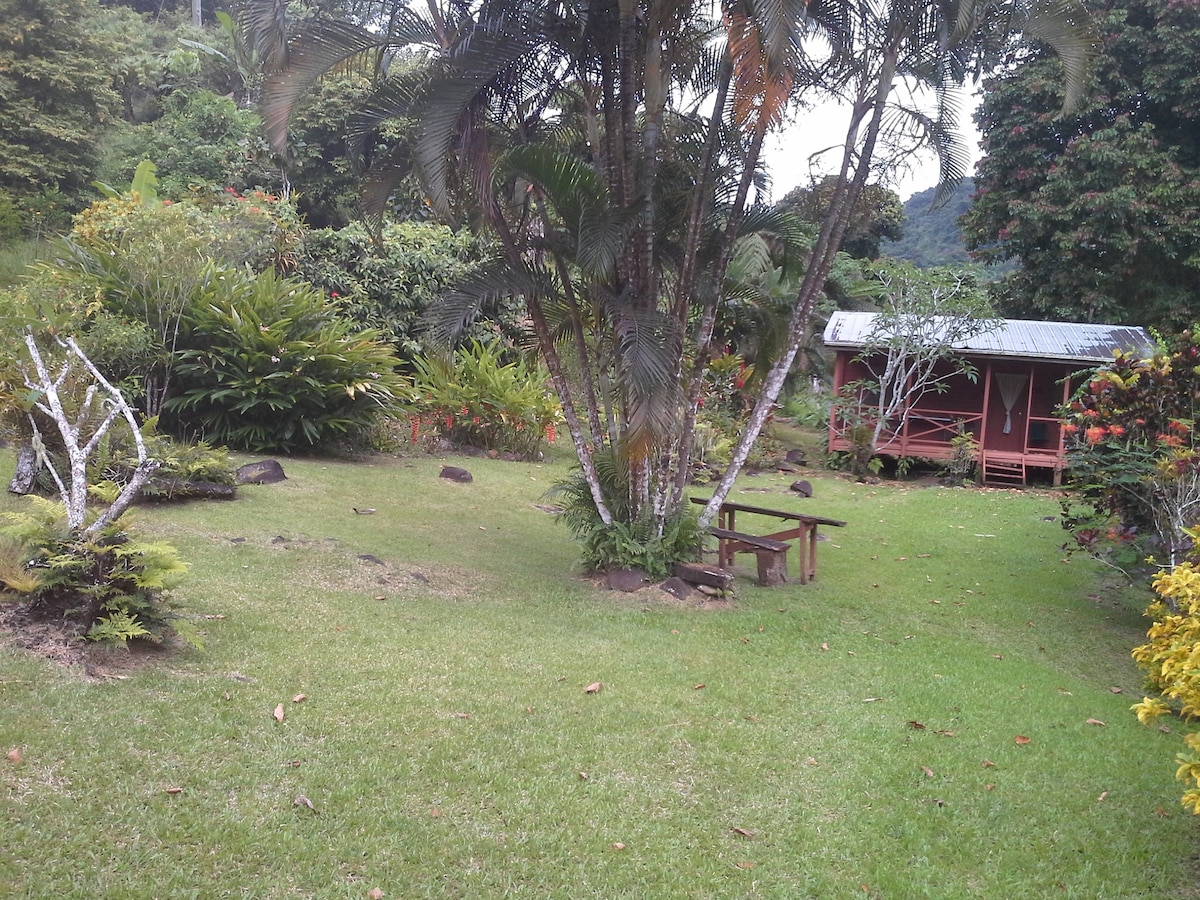 Mga rustic cabin ( en suite) na nakatakda sa isang tropikal na gumaganang bukid. Mga malalaking lumang puno , maaliwalas na berdeng kapaligiran, mga organic na hardin ng gulay, sa labas ng grid na nakatira. Malapit sa kalikasan at napapalibutan ng inlet para sa tahimik na mga sesyon ng kayaking at paglangoy. Sa kalikasan pa malapit sa iba pang mga resort at atraksyon. Pribadong cabin na may ensuite na banyo sa isang nakapaloob na hardin - kalikasan sa pinakamaganda nito.
