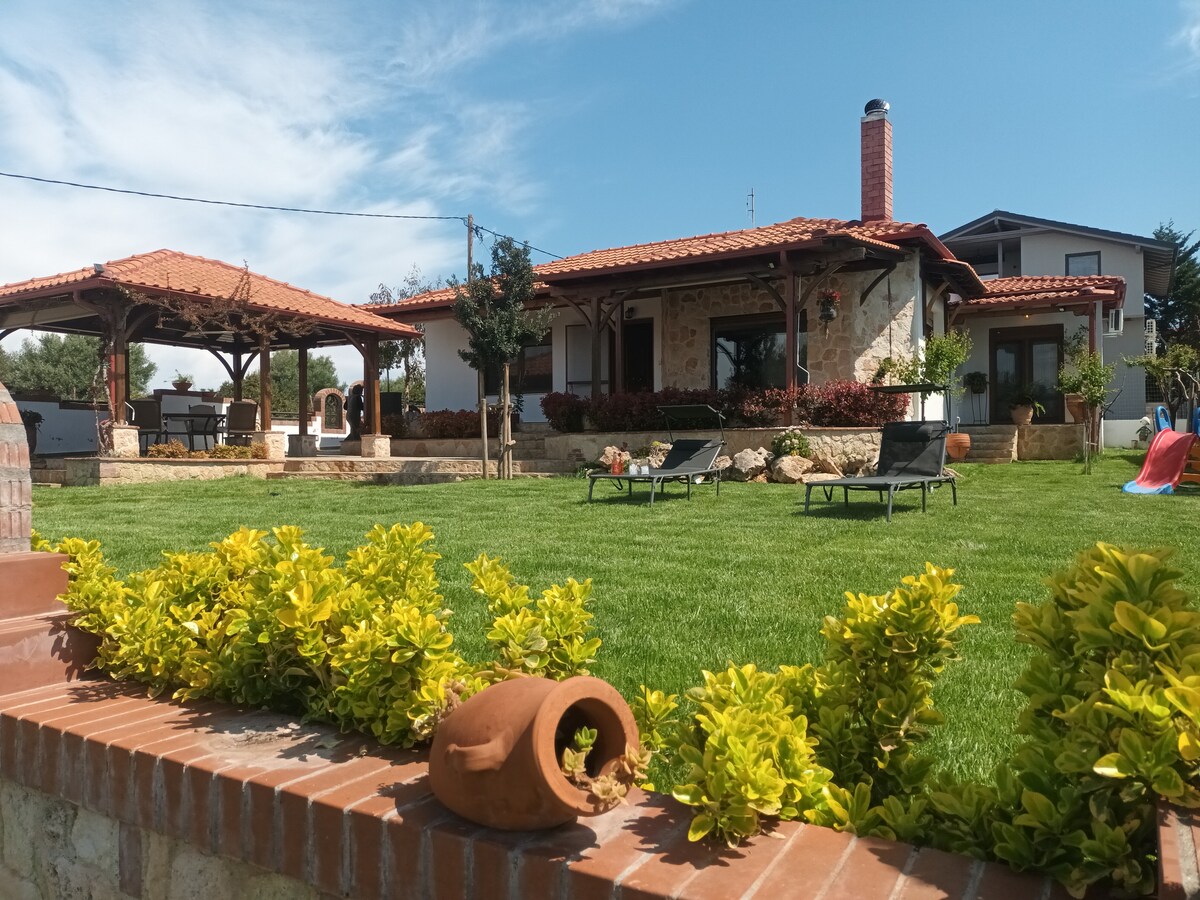 Villa sa kagubatan ng mga pine forest ng Sani. 20'lakad mula sa Koutsoupia beach, Sani beach, Sani Resort at Marina. Hardin at balkonahe bukod pa sa natatanging tanawin para makasama ang iyong mga mahal sa buhay. Mga pribadong paradahan: 2 Tinitiyak ng natatanging posisyon ng aming villa na makukuha mo ang parehong relaxation na hinahanap mo ngunit maaari ka ring magkaroon ng lahat ng amenidad na ibinibigay ng Sani Beach.