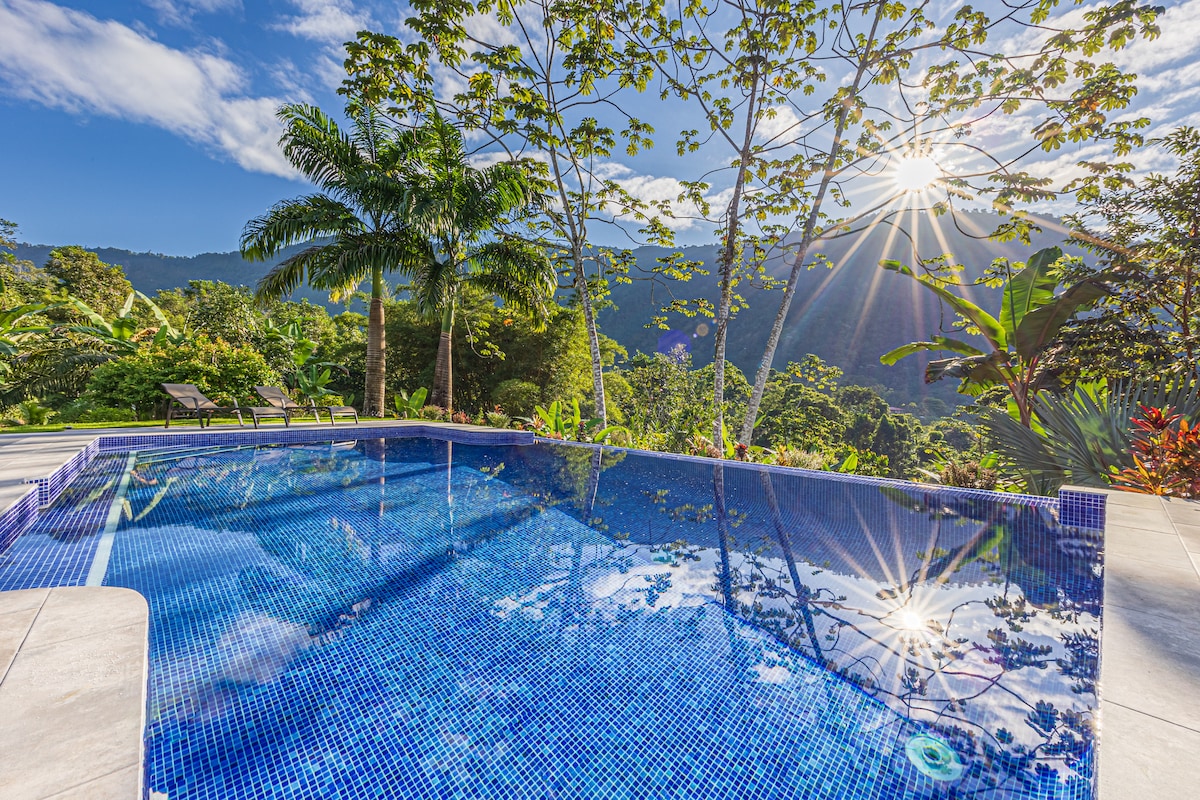 Drift off to sleep, and awaken to the gentle babble of a nearby rainforest creek, distant ocean waves, and tropical birds in resplendent tree tops. This modern but cozy 1bd/1ba comes with all kitchen essentials, BBQ, and a luxury bath featuring jungle views and double shower heads. Step outside and into the infinity-edge pool with customizable lighting and ocean views. Monkeys, sloths, toucans, coati’s, and waterfalls abound. Surround yourself with serene, vibrant, natural beauty.