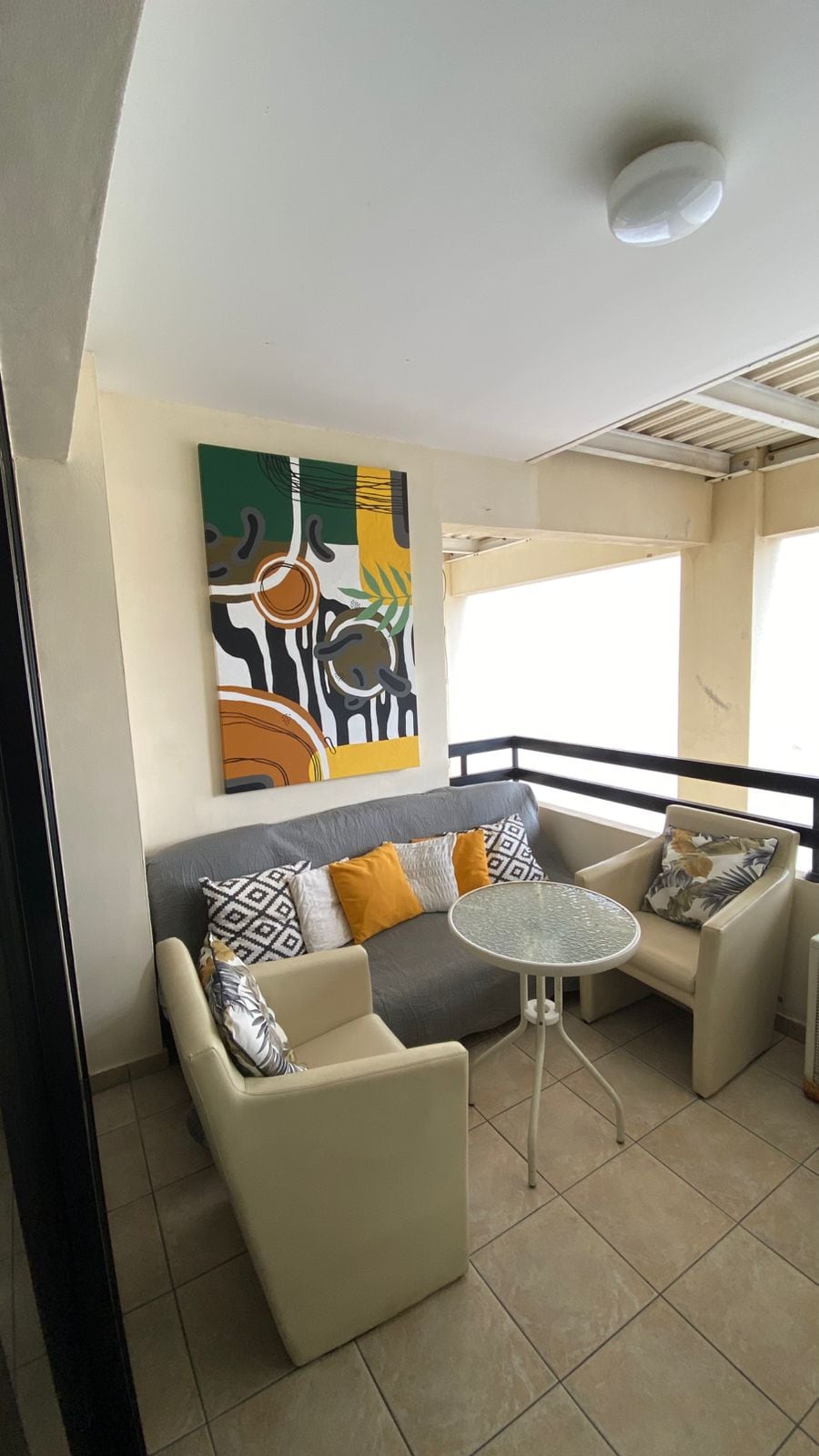 Buong flat na may malaking balkonahe at shared na pool.