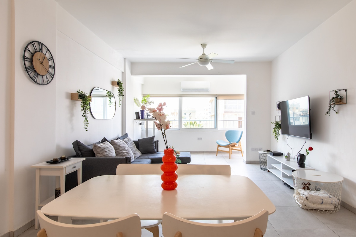 Mamalagi sa aking komportable at modernong apartment sa gitna ng Larnaka sa paanan mismo ng lahat ng pangunahing tanawin, sa loob ng isang minutong lakad ang layo mula sa sikat na "finikoudes" na beach, lahat ng uri ng restawran, cafe, at ilan sa mga pinakasaysayang landmark ng isla. Binubuo ang apartment ng malaking komportableng queen - size na higaan, modernong kumpletong kusina, at maliwanag na sala na may matalinong 45 pulgadang screen, sofa bed na puwedeng gawing full queen - size na higaan para makakuha ng ika -3 bisita.