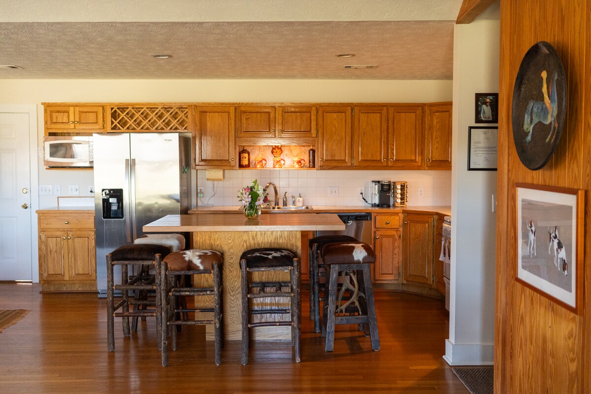 Isang magandang farmhouse na may open concept ang Lodge na nasa 16 na maganda at tahimik na acre na may pond at pastulan. Nakabakod ang bakuran sa harap para sa maliliit na bata at alagang hayop. Pangunahing suite na may king bed Pangalawang suite na may queen size na higaan May gate ang balkoneng pambalot. Mabilis na WiFi sa buong lugar Gourmet na kusina na may 11 foot na isla, dalawahang range, lahat ay may magandang tanawin ng pond at paglubog ng araw mula sa kusina. Firepit na may magagandang tanawin ng paglubog ng araw. Madaling puntahan ang Troy at Troy University habang nasa probinsya pa rin.