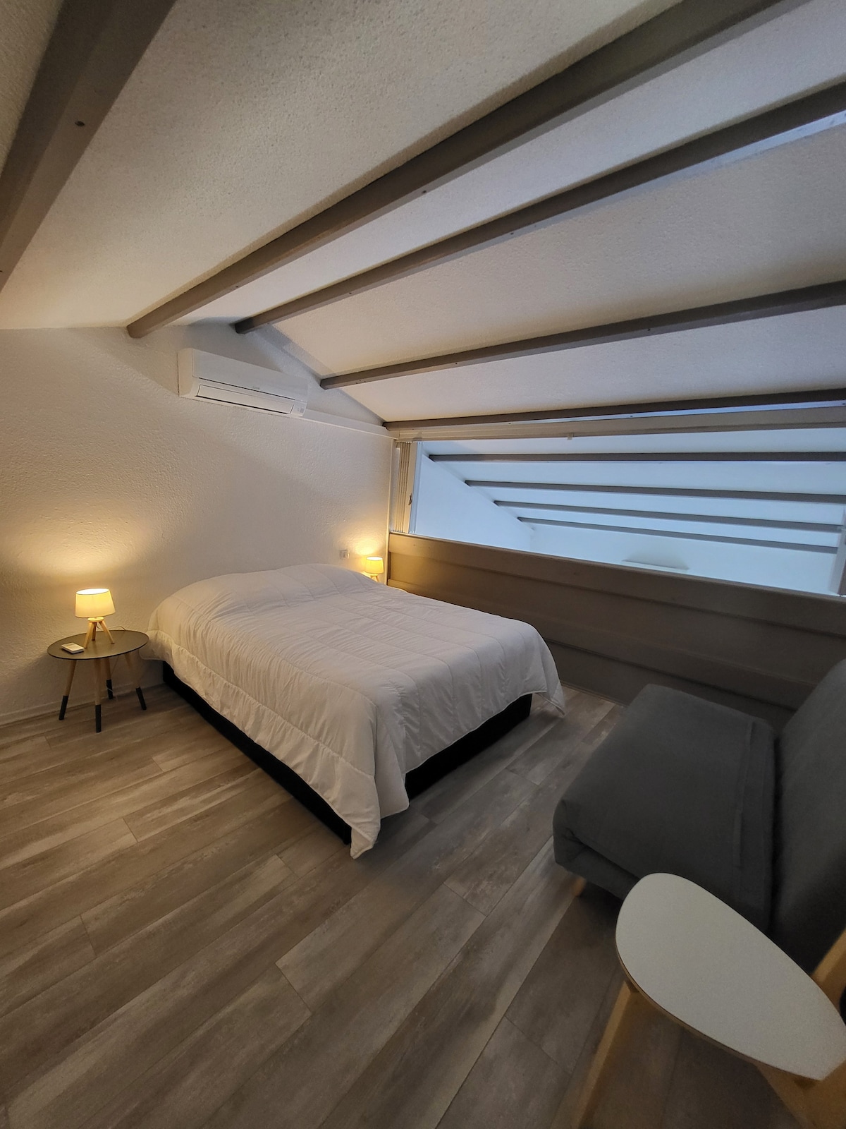 Duplex 30 M2 refait à neuf dans village touristique de l'Aude Toutes commodités à pied boulangerie , épicerie , buraliste , distributeur de billets . 2 terrasses dont 1 sans vis à vis. Chambre en mezzanine lit 160 X 200 Canapé en rez de chaussée . Chauffage clim réversible . Quartier très paisible . A 2 mn à pied du massif de la clape ballade pédestre et VTT. WIFI fibre