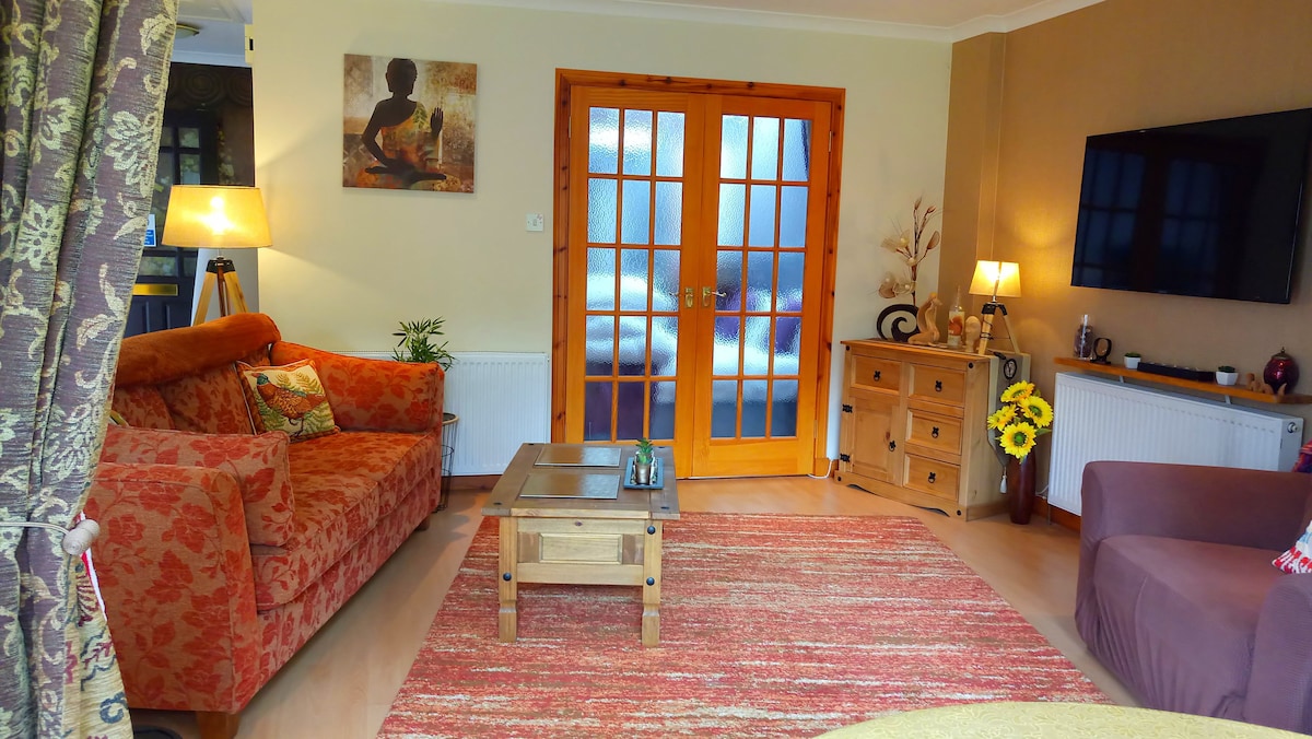 Ang guest suite ay isang maliit na annexe , isang independiyenteng bahagi ng aming Family home . Sariling nakapaloob sa sarili nitong pribadong pasukan, mayroon itong double bedroom na may sitting area , en suite, at nakahiwalay na maliit na kusina na may self catering facility na binubuo ng microwave, takure, toaster, sandwich maker at refrigerator. Tv, Wi Fi parking sa drive o libreng paradahan sa kalye. Ang mga bisita ay may eksklusibong paggamit ng suite. Matatagpuan ang property sa isang tahimik na residential area na 10 hanggang 15 minutong lakad mula sa City Center.