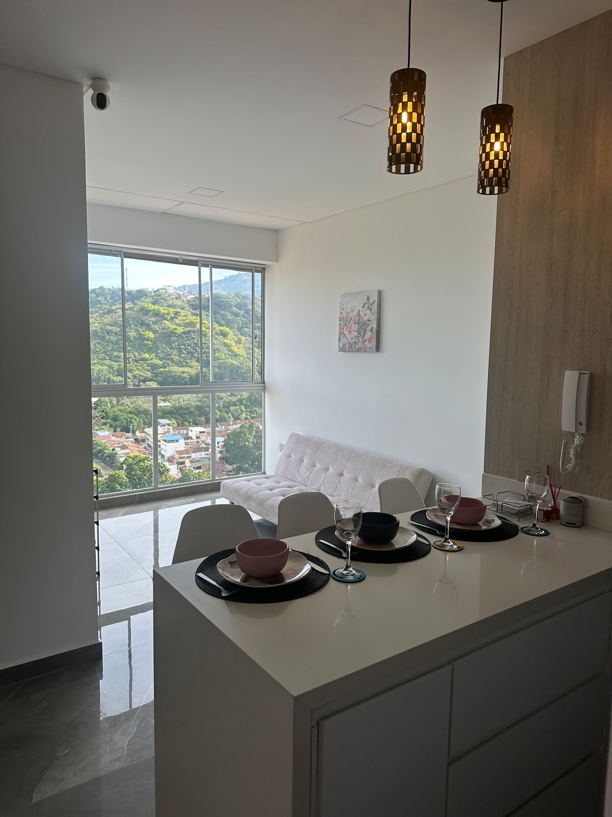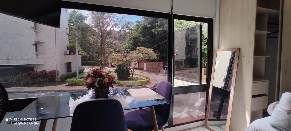 Tangkilikin ang kaginhawaan at kaginhawaan sa magandang apartment na ito sa lungsod ng Bucaramanga na idinisenyo upang mapaunlakan ang mga solong tao sa mga business trip at turismo o maliliit na pamilya sa kabuuang kaginhawaan. Eksklusibong sektor ng lungsod na may 3 shopping center na wala pang 10 minuto ang layo. Maghanap ng International Hospital. Sa lugar ay may mga restawran at supermarket na mapupuntahan habang naglalakad sa loob ng 100 metro. Puwede mong gamitin ang aming pribadong covered parking at paradahan ng mga bisita.