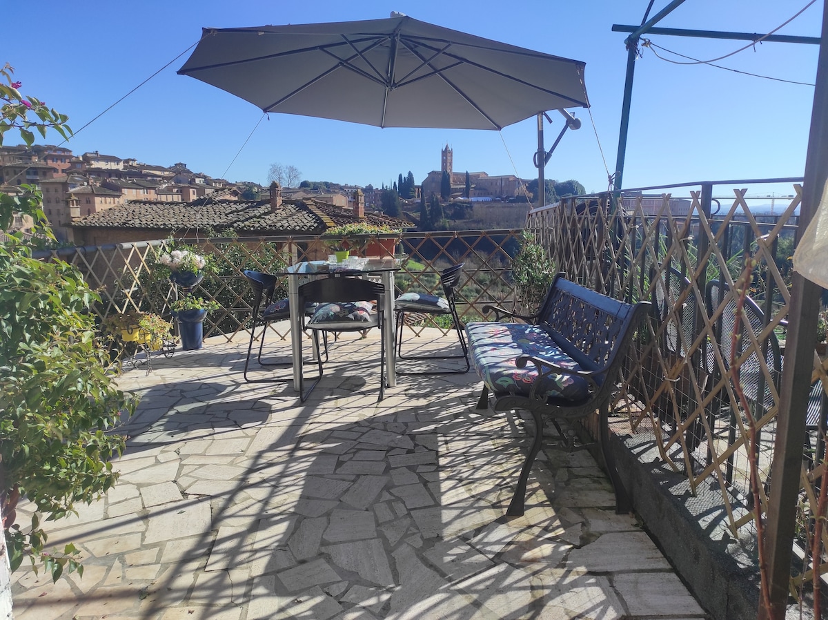 Intero alloggio luminoso e accogliente a soli 200 MT da piazza del Campo, 400 MT dal Duomo, con comodo parcheggio auto a soli 150 MT. La bellezza e la quiete della campagna in pieno centro storico, godibili dal terrazzo. Tutti i servizi raggiungibili a piedi. Soltanto 5 scalini per l'ingresso.