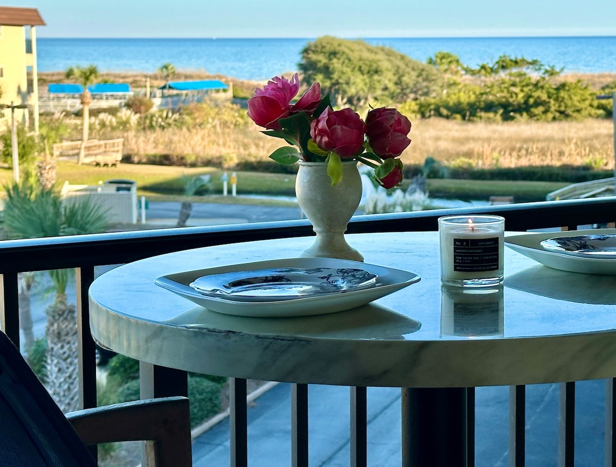 Bagong inayos noong nakaraang taon! Kaibig - ibig na beach front condo na matatagpuan sa HH Beach & Tennis Resort. Panoorin at pakinggan ang mga alon ng karagatan mula mismo sa iyong balkonahe sa ika -2 palapag! Ang condo ay nasa isang gated na lugar sa loob kung saan ang mga bisita ay magkakaroon ng access sa isang pribadong beach, 2 pool, resort restaurant, tennis, pickleball, beach volleyball, palaruan, cookout area, bike rental, at gym. Nagbibigay din kami ng mga upuan sa beach, cooler, boogie board, at kape! Narito na ang lahat! Ang bakasyunang hinihintay at nararapat sa iyo!