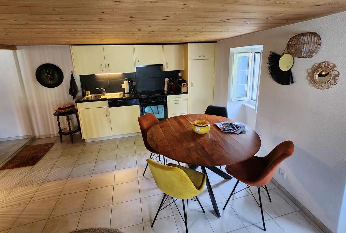 Mga nakamamanghang tanawin ng lambak at bundok. Ganap na kalmado sa isang bucolic na kapaligiran. Malawak na pagpipilian ng mga hike sa tag - init at taglamig. Malapit sa mga ski slope ng Ovronnaz pati na rin sa mga thermal bath. Sa winter shuttle bus, 3 minuto ang layo. Bagong apartment, maingat na pinalamutian, high - end na kasangkapan. Magandang pribadong terrace na may barbecue.