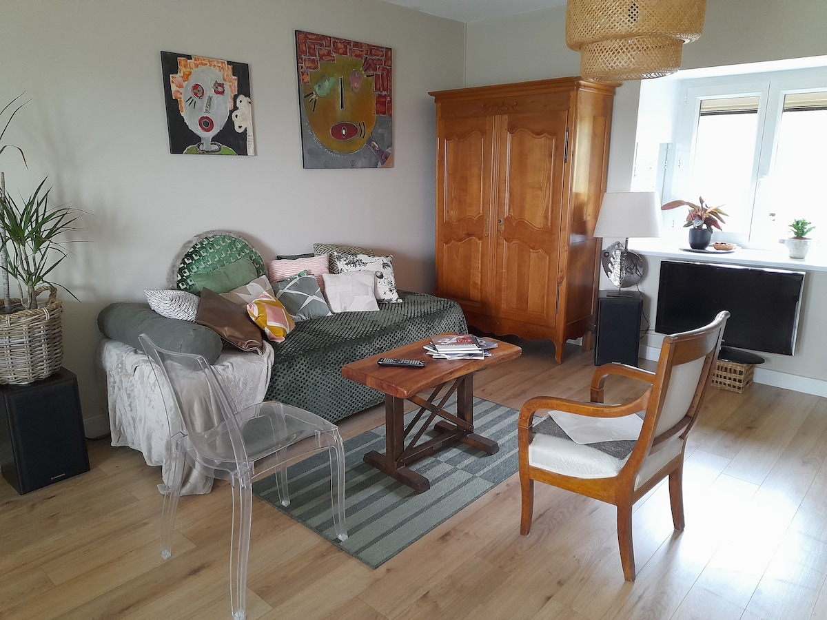 Logement indépendant au cœur de notre longère, dans un cadre paisible bercé par le chant des oiseaux. Chambre confortable, cuisine, salle d’eau avec WC. Entrée privative, Wi-Fi, TV, parking gratuit à 100 m, possibilité de charger et décharger la voiture dans la cour. Grand jardin fleuri avec un coin repas extérieur privé pour vos moments de détente. Possibilité d’abriter 2 vélos. L’endroit est très calme. Commodités du village : boulangerie, bar-épicerie, coiffeuse, massage, infirmière ...